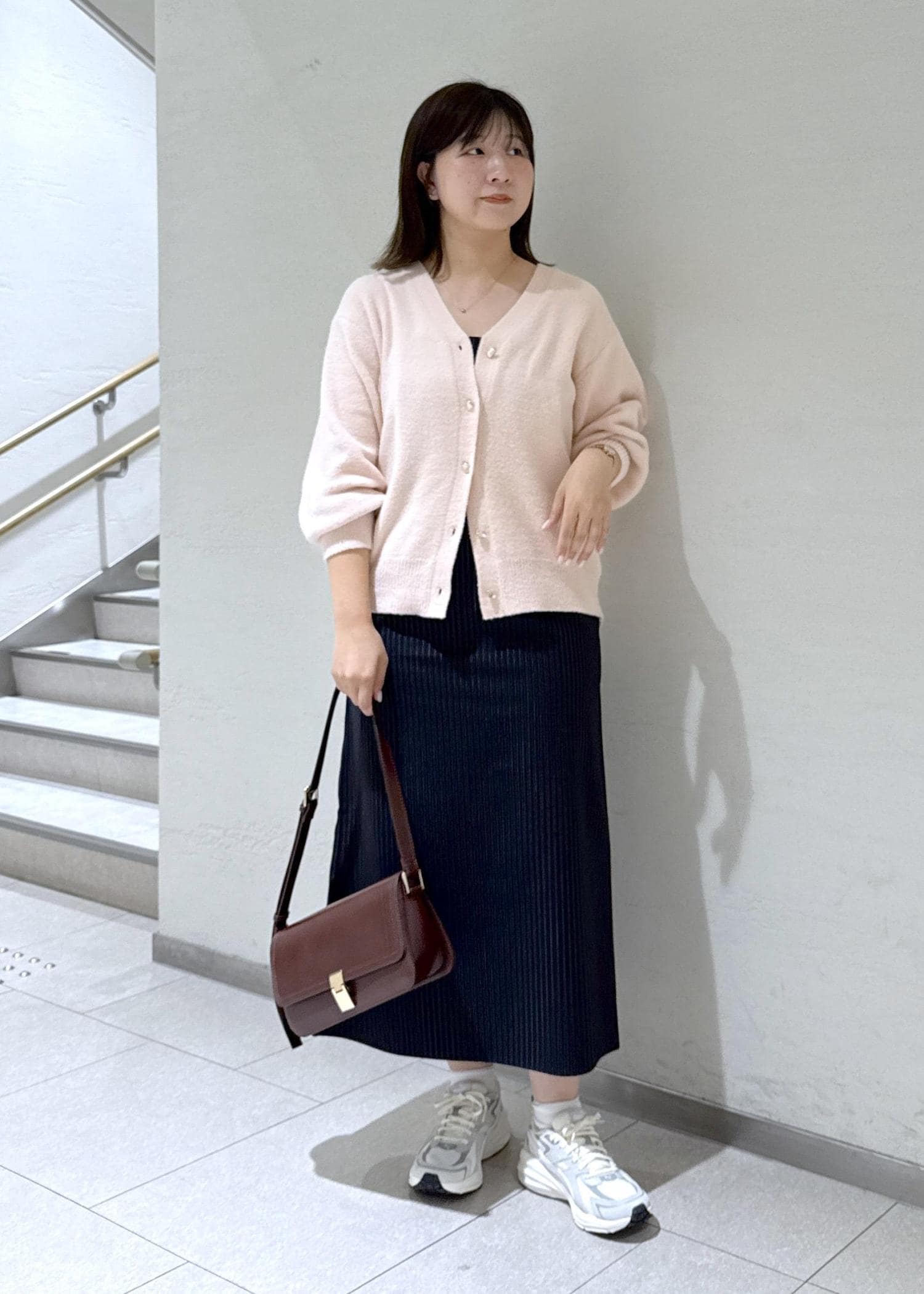 リラックス感あるパンツなので、ハイゲージニットでキレイめにまとめたり、シャツ系と合わせると夏らしい印象で楽しめます。