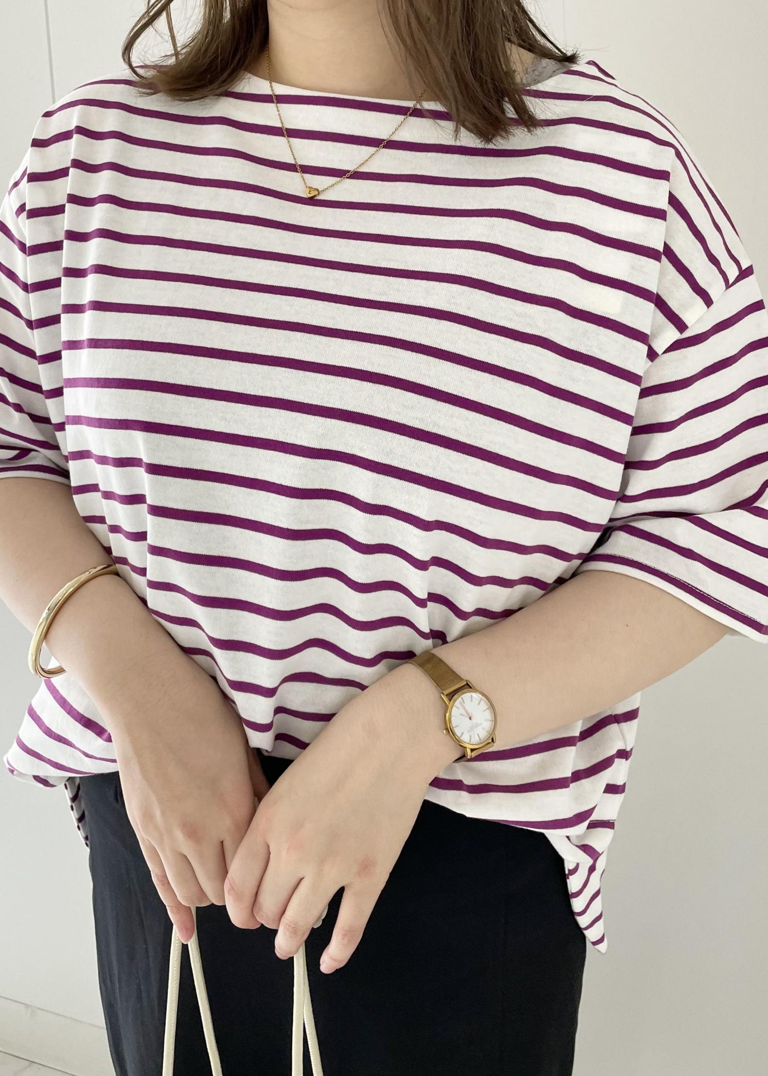 ゆったりシルエットがこなれ感がでてかわいいボーダーTシャツにタイトスカートを合わせて大人カジュアルに♡
