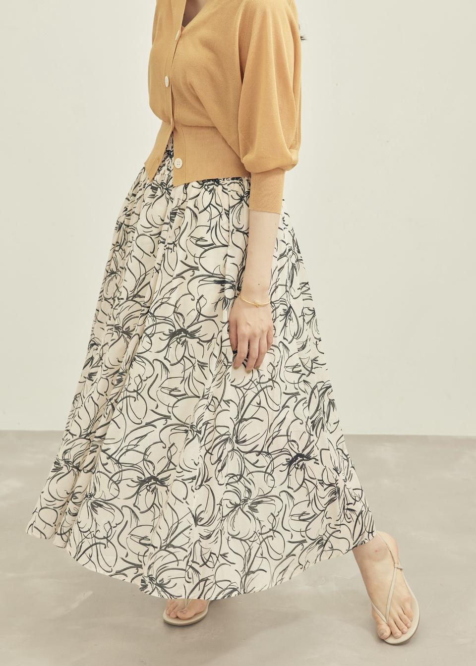 新作のDEVEAUX社のプリント生地を使用したペイントフラワーシリーズのスカートのご紹介です。