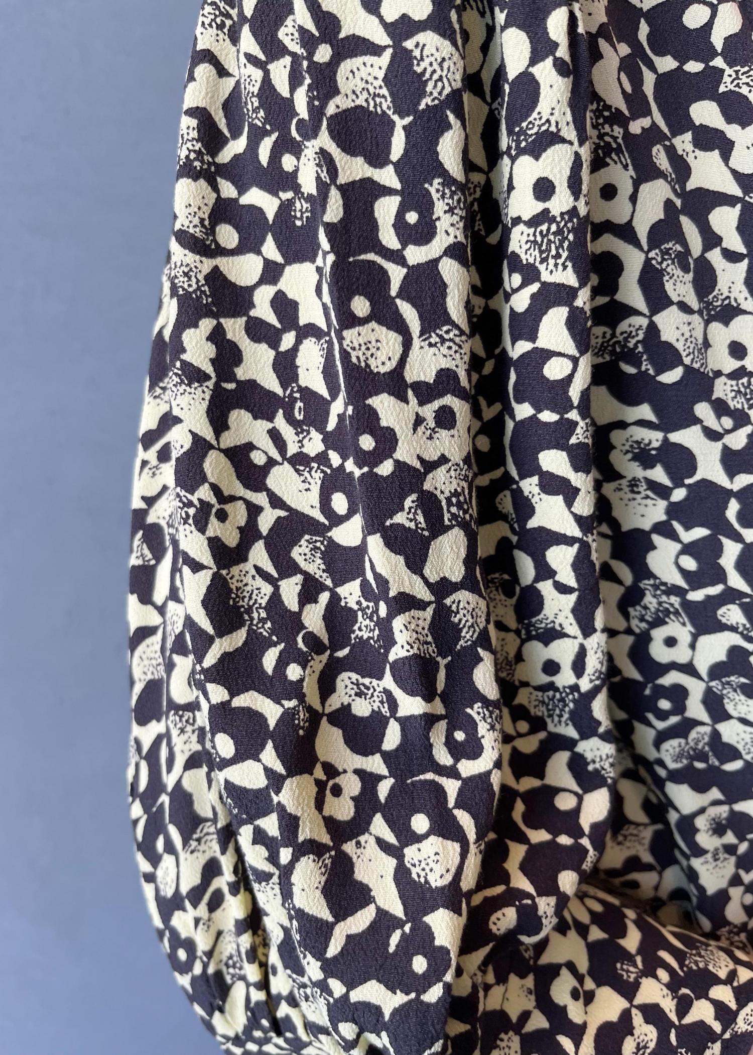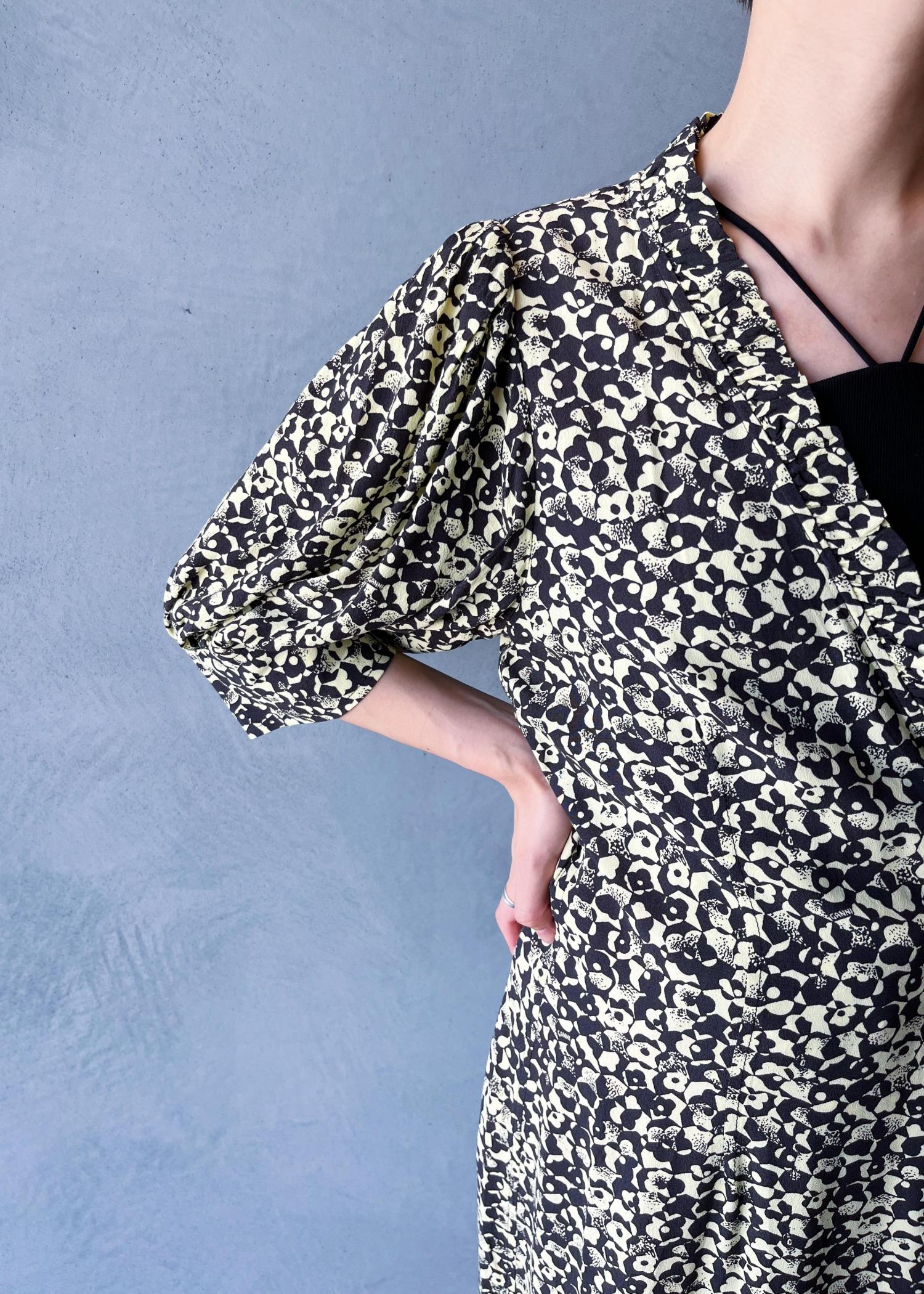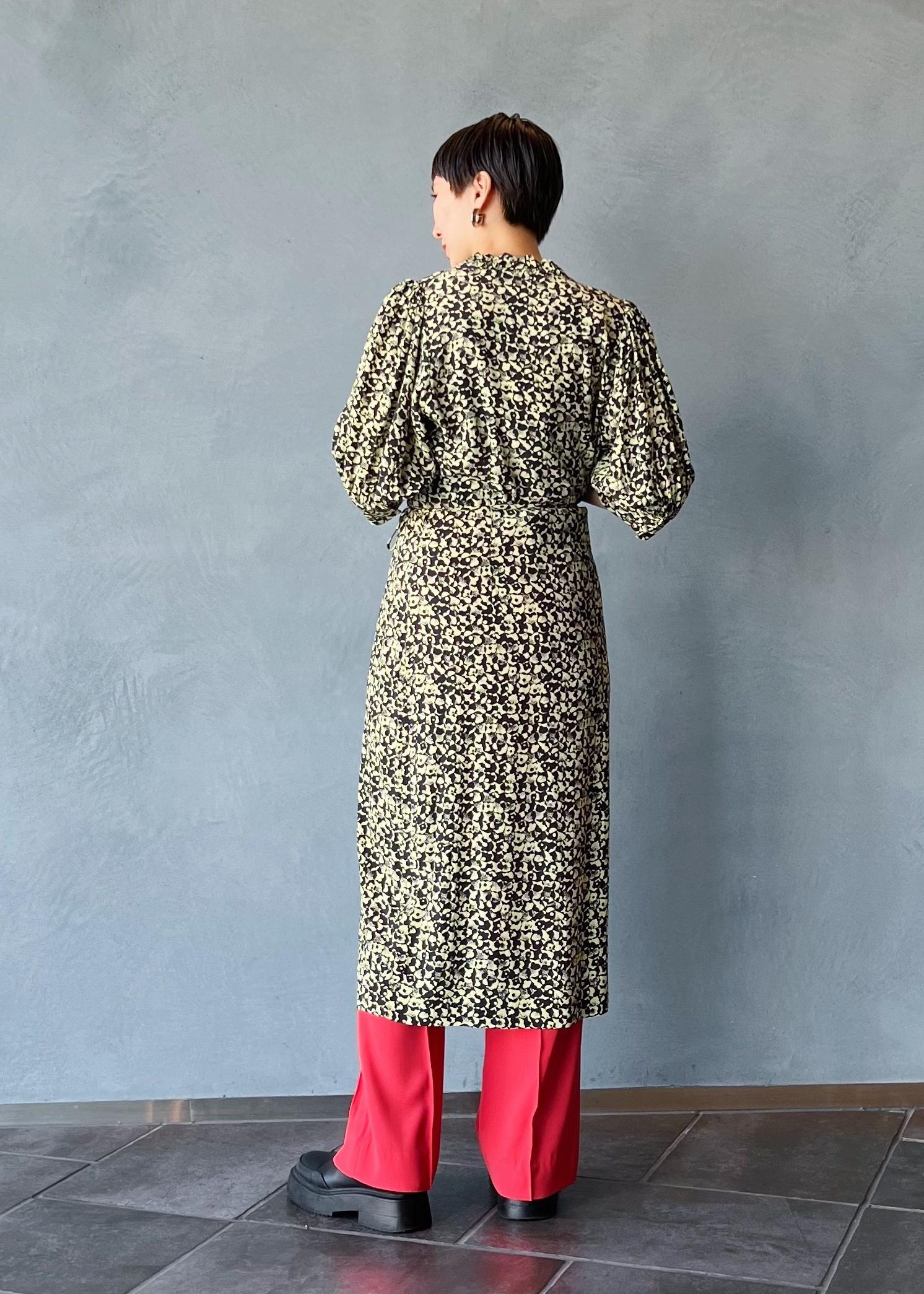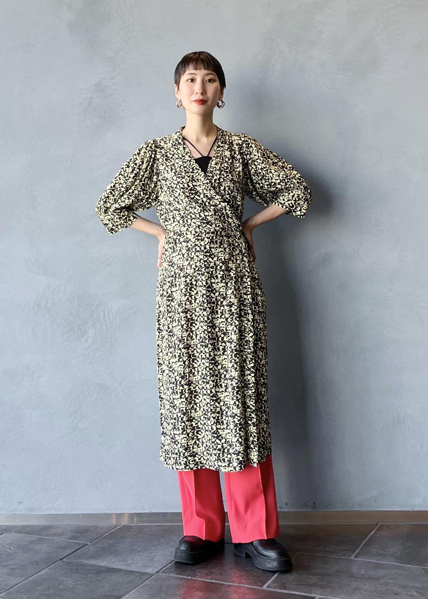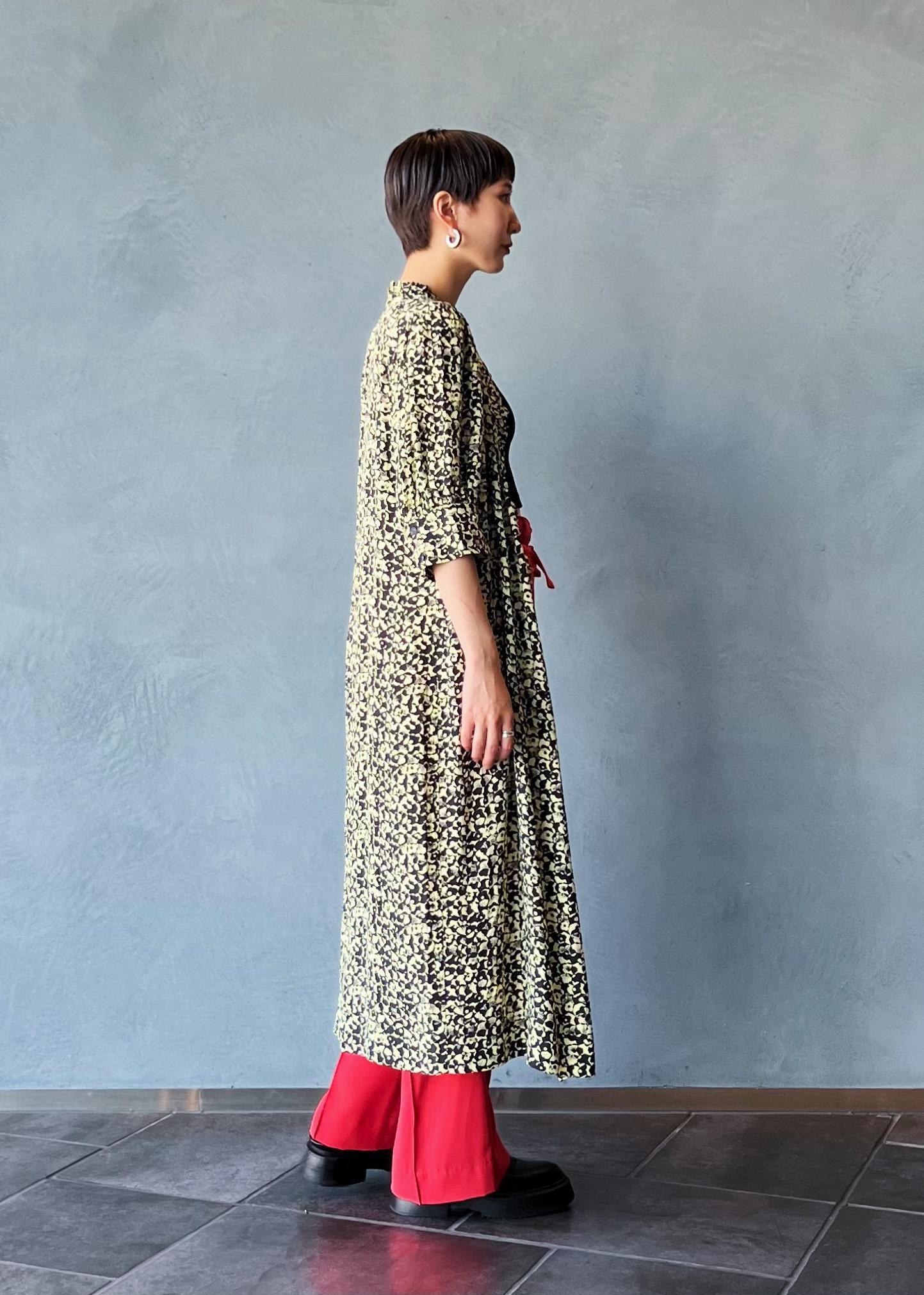 イエローとブラックのフラワープリントは存在感もあり、着ていてとても気持ちを上げてくれるアイテムです。
