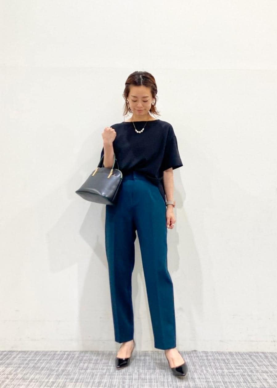 トップスは楽ちんながらもブラウス素材できれい見えします◎