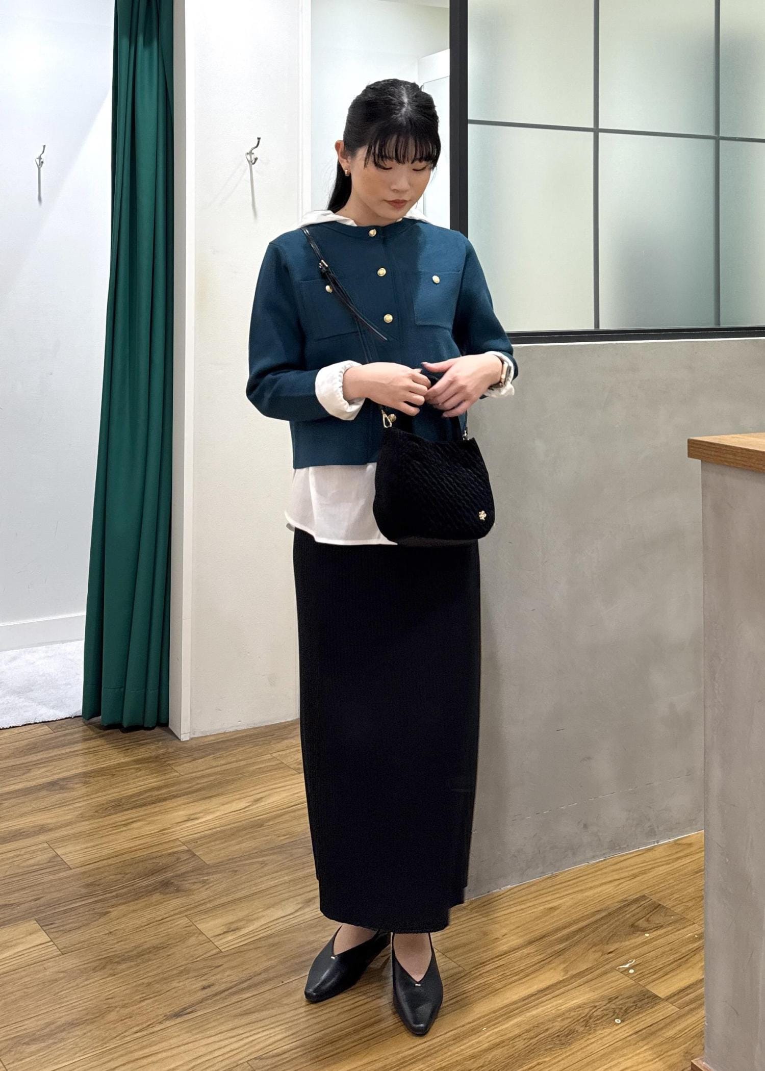 リボンデザインが華やかなブラウスにチェック柄が映えるマーメイドスカートを合わせたキレイめコーデにしました。