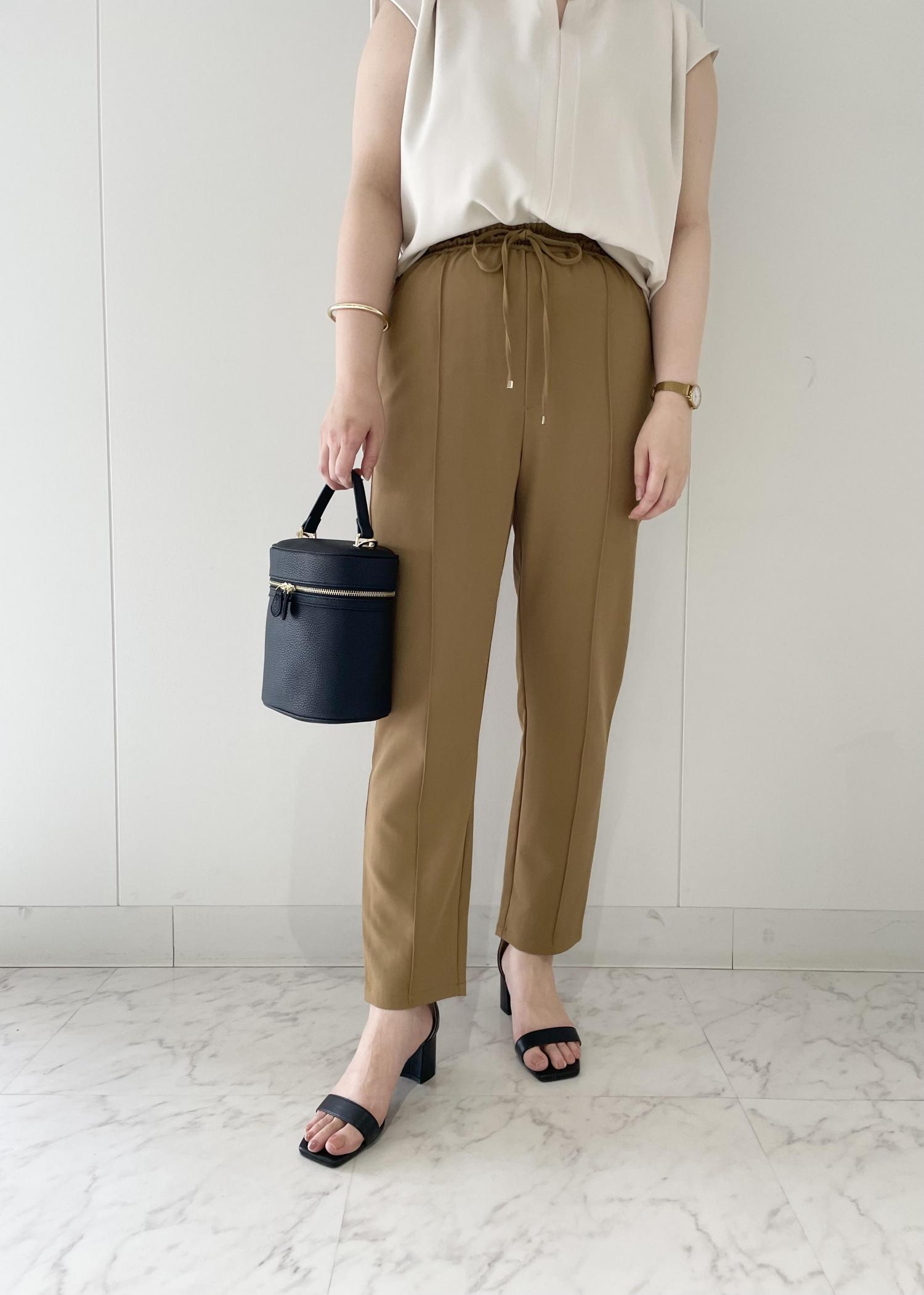 脚のラインを拾いにくいストレートラインのパンツで程よいゆとり感で脚を綺麗にみせてくれます◎