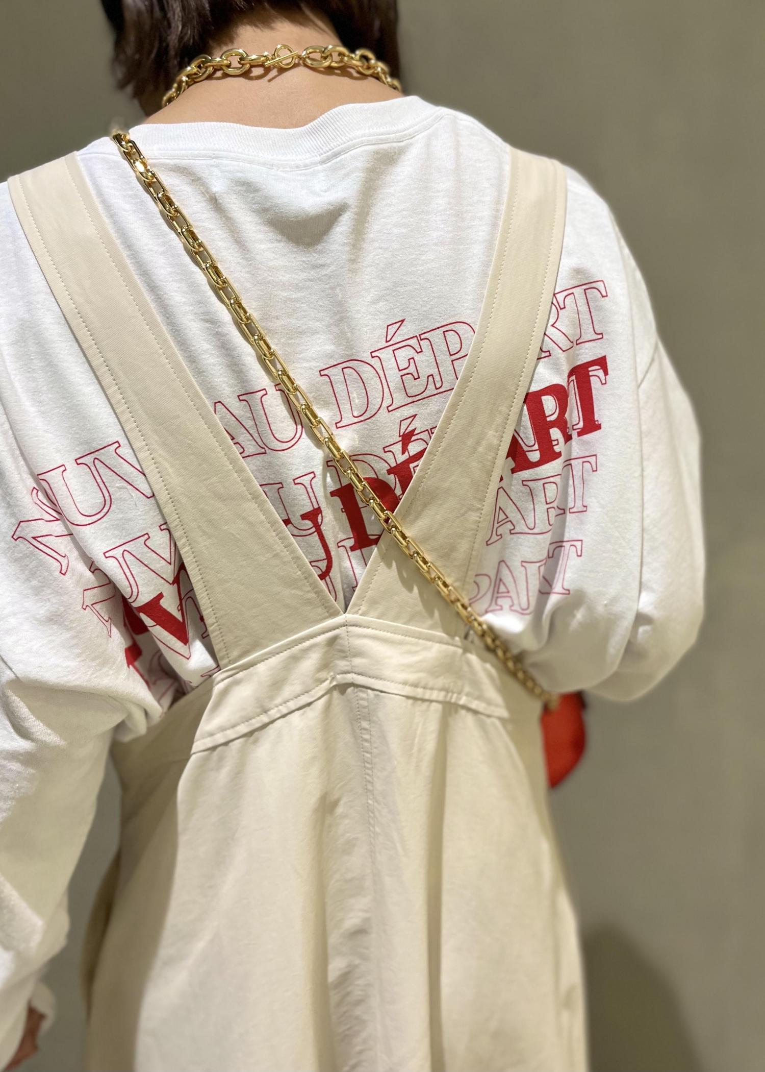 今回はロゴTシャツを合わせ、カジュアルなスタイリングに。