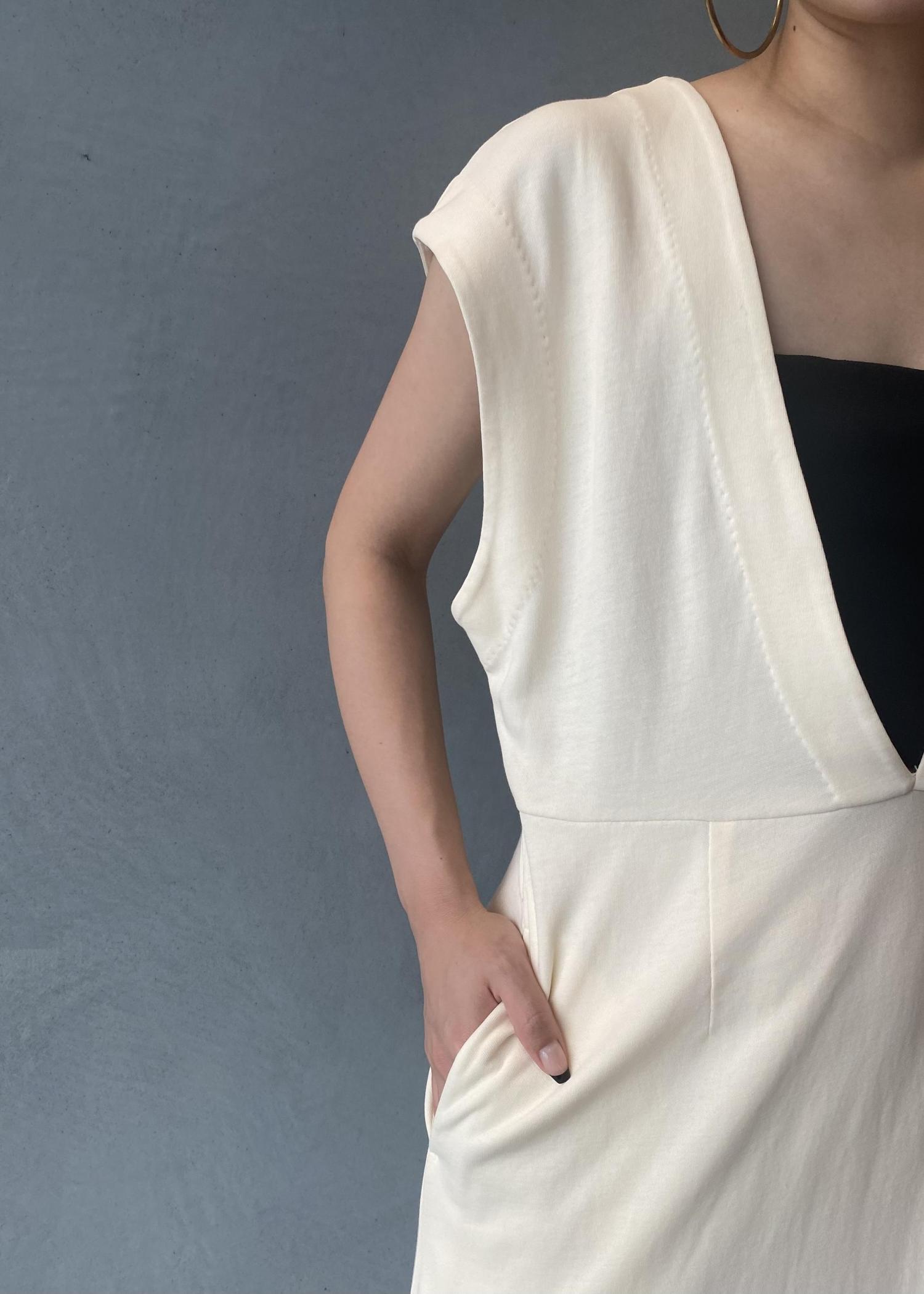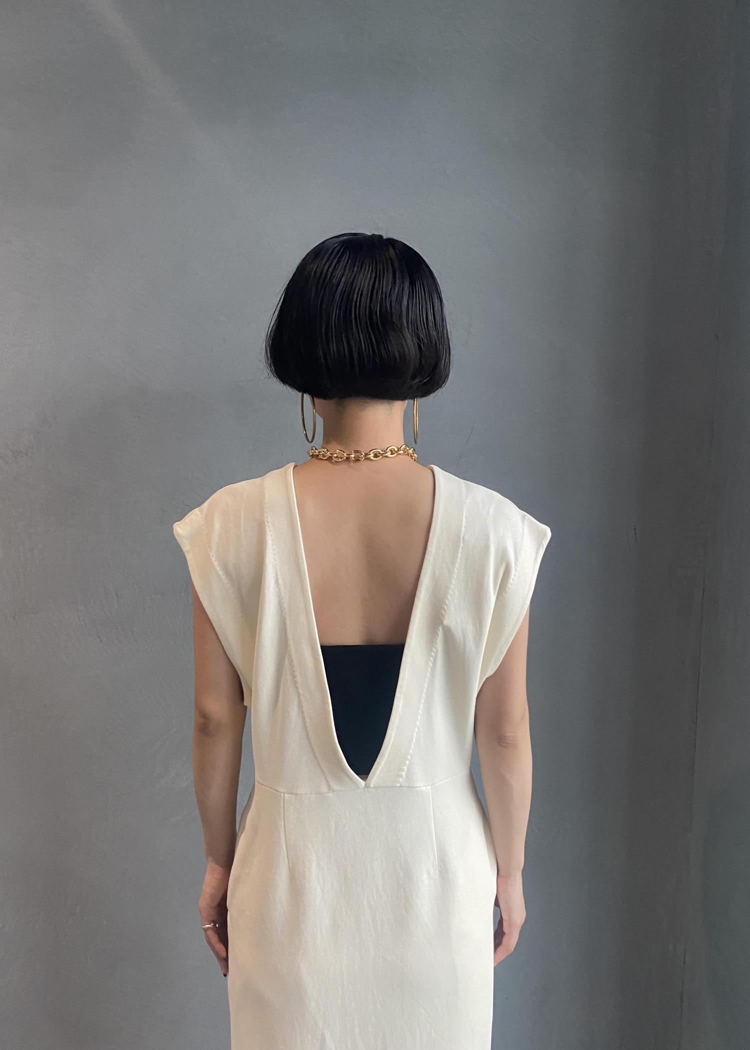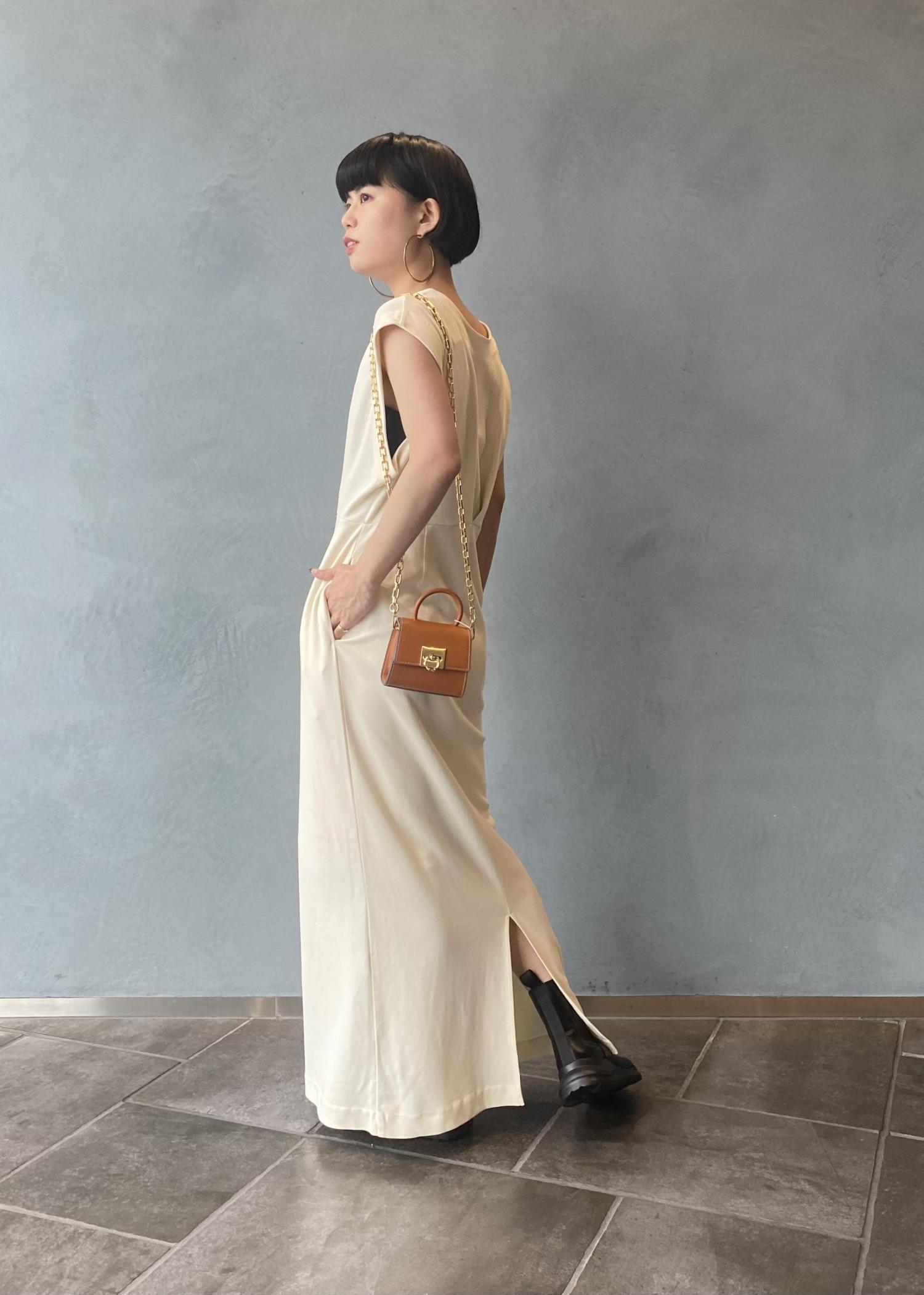 こちらのワンピース、ビスチェがセットになっている上に、ワンピースは前後着用可能なデザインです。
