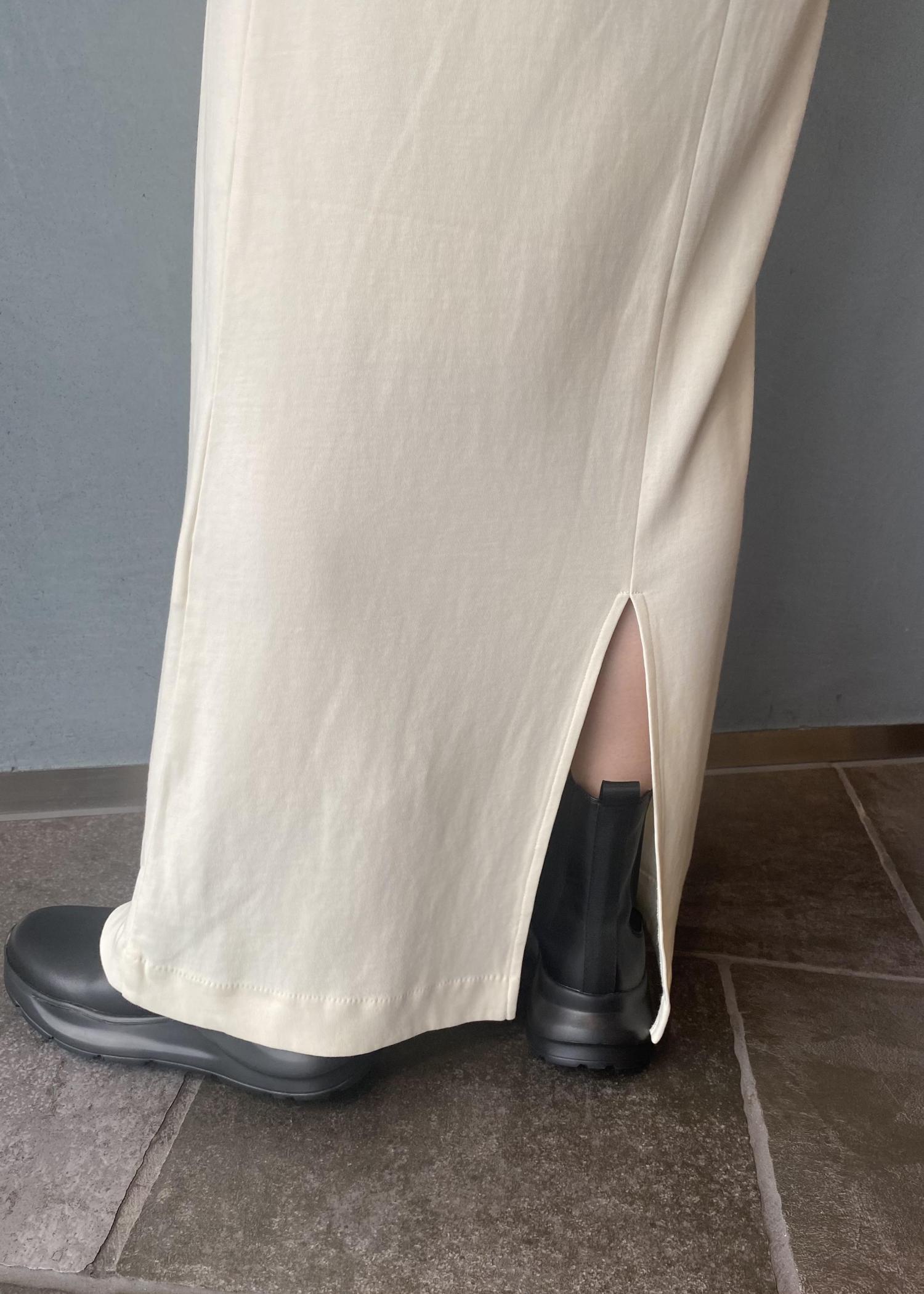シックなデザインながらも、伸縮性のある素材のためラフに着ることができます。