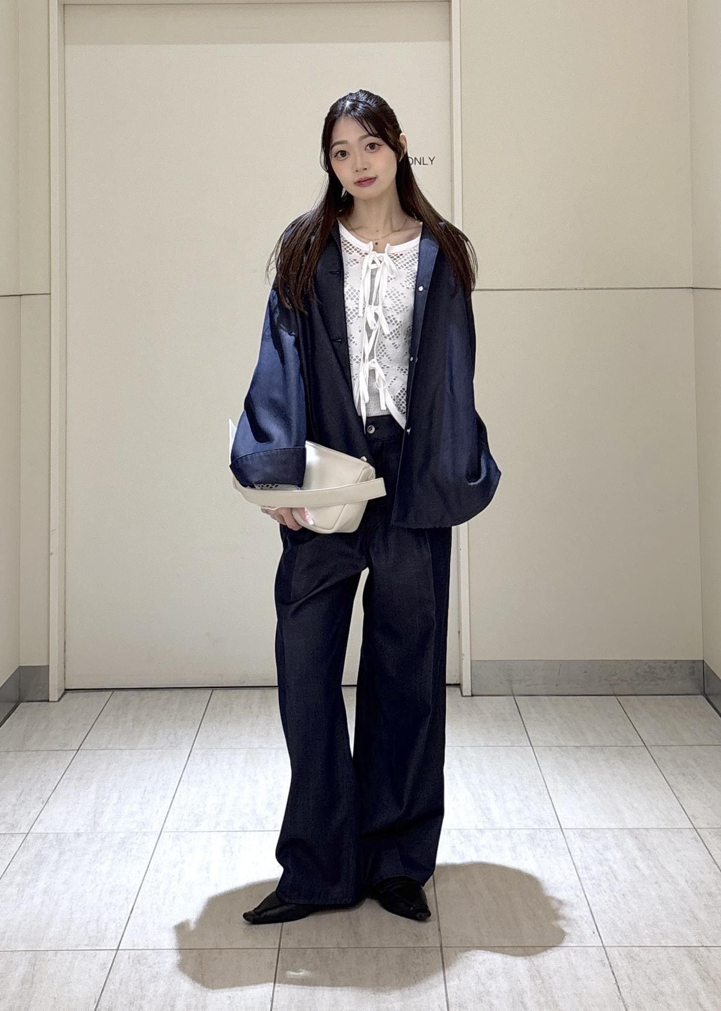 一緒に合わせたスカートも、実は長袖シャツワンピースになってます。巻きスカートのようにアレンジすると、今からすぐ使えるので、良かったら是非店頭にてアレンジ着用してみて下さい!