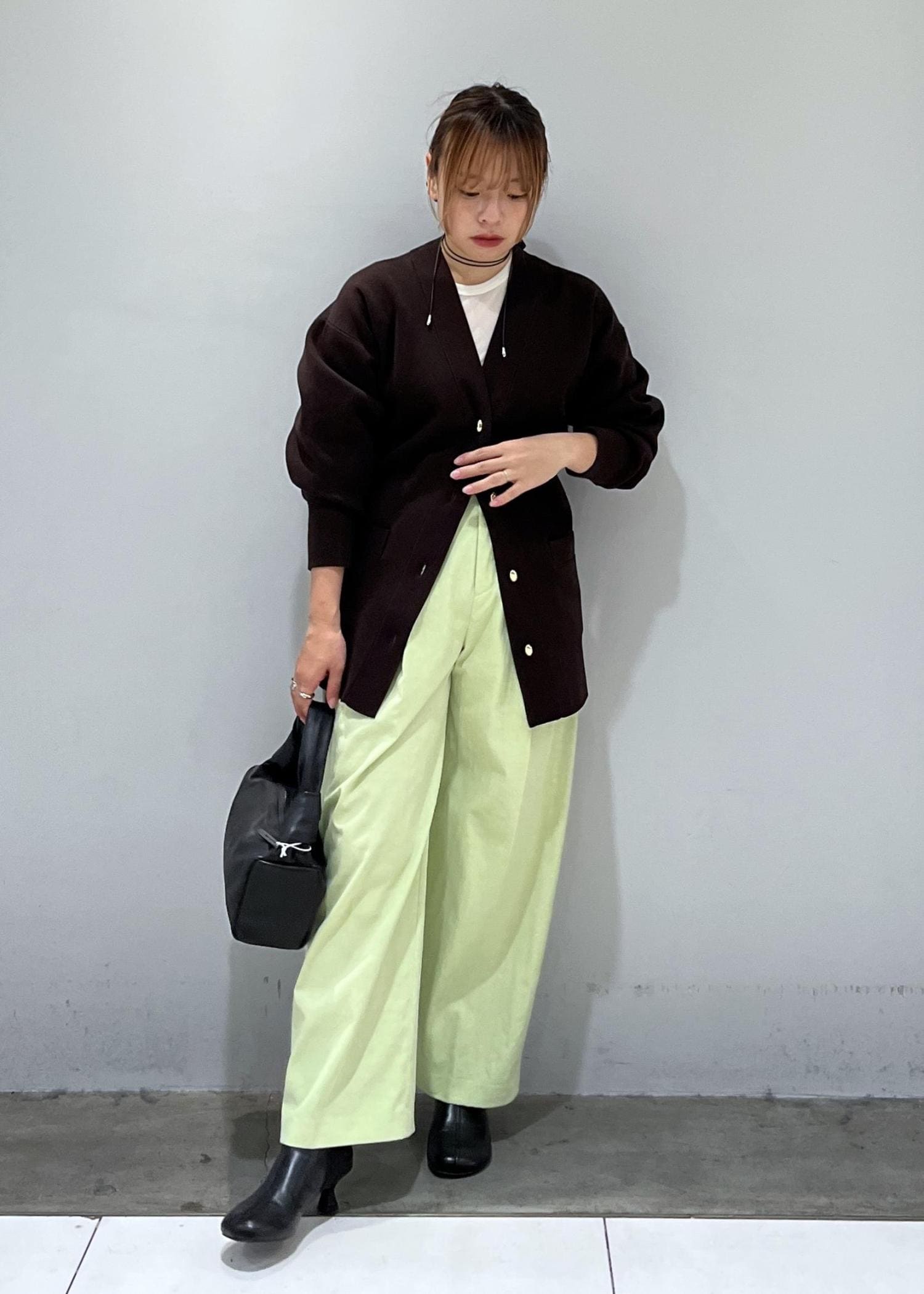 今回のチェック柄は、色味が鮮やかでシンプルニット合わせも