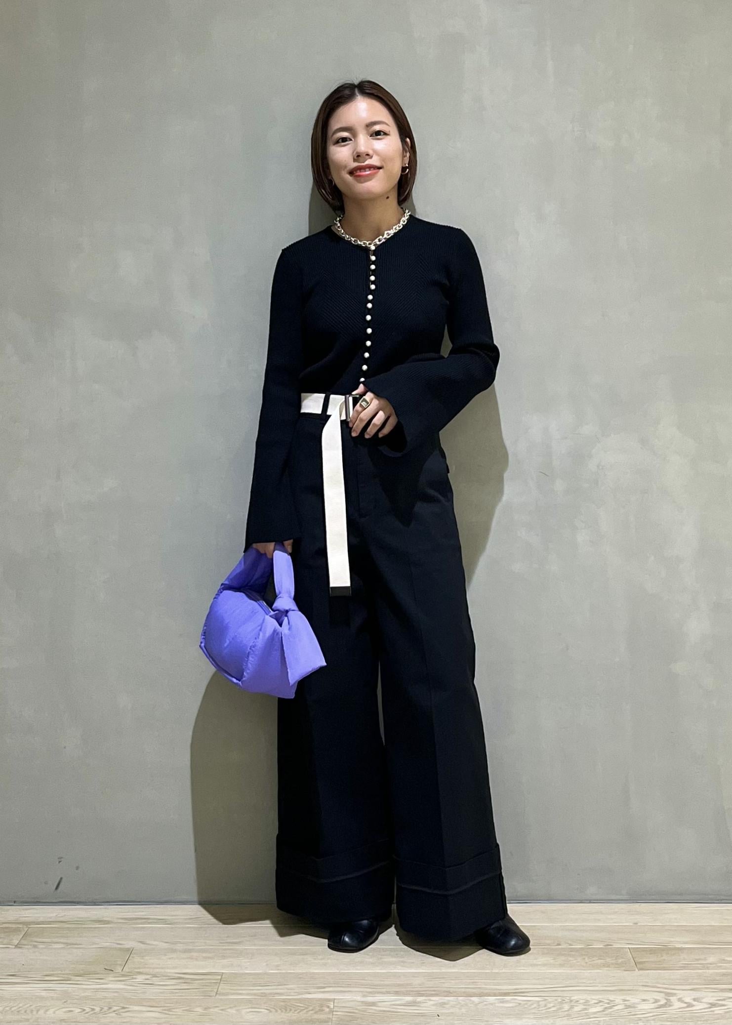 パールボタンがポイントになるので、アクセサリーが無くても華やかな印象で着ていただけます。
