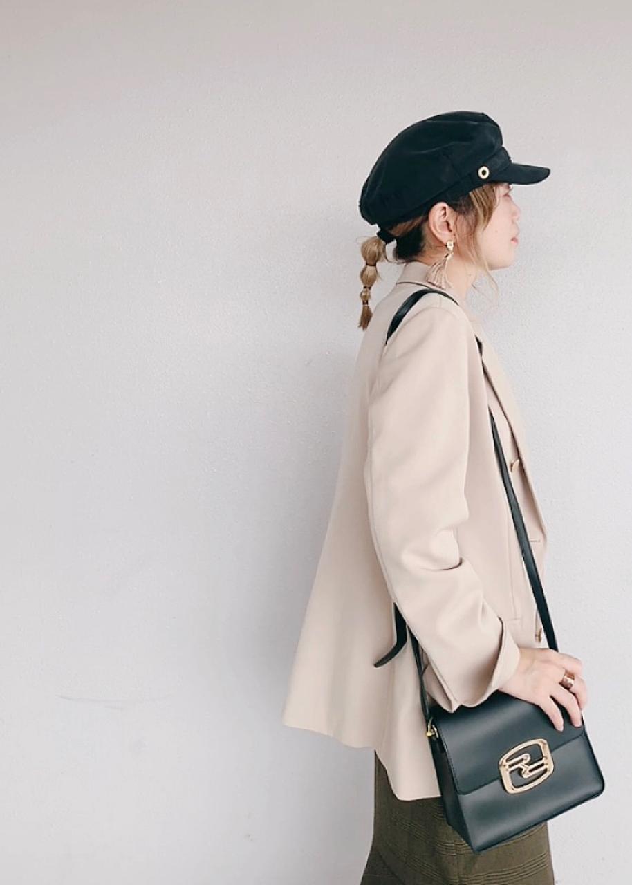 秋にピッタリな金ボタンのジャケットにマーメイドスカートを合わせたトラッドな秋コーデです。