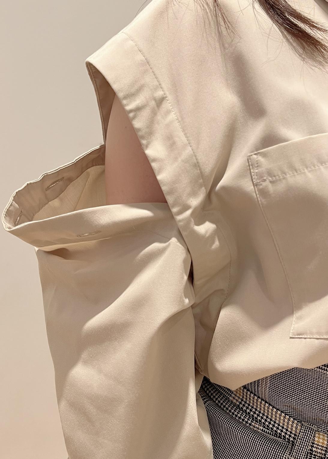 袖がスリットのシャツで今年らしいトレンドスタイルを取り入れました!
