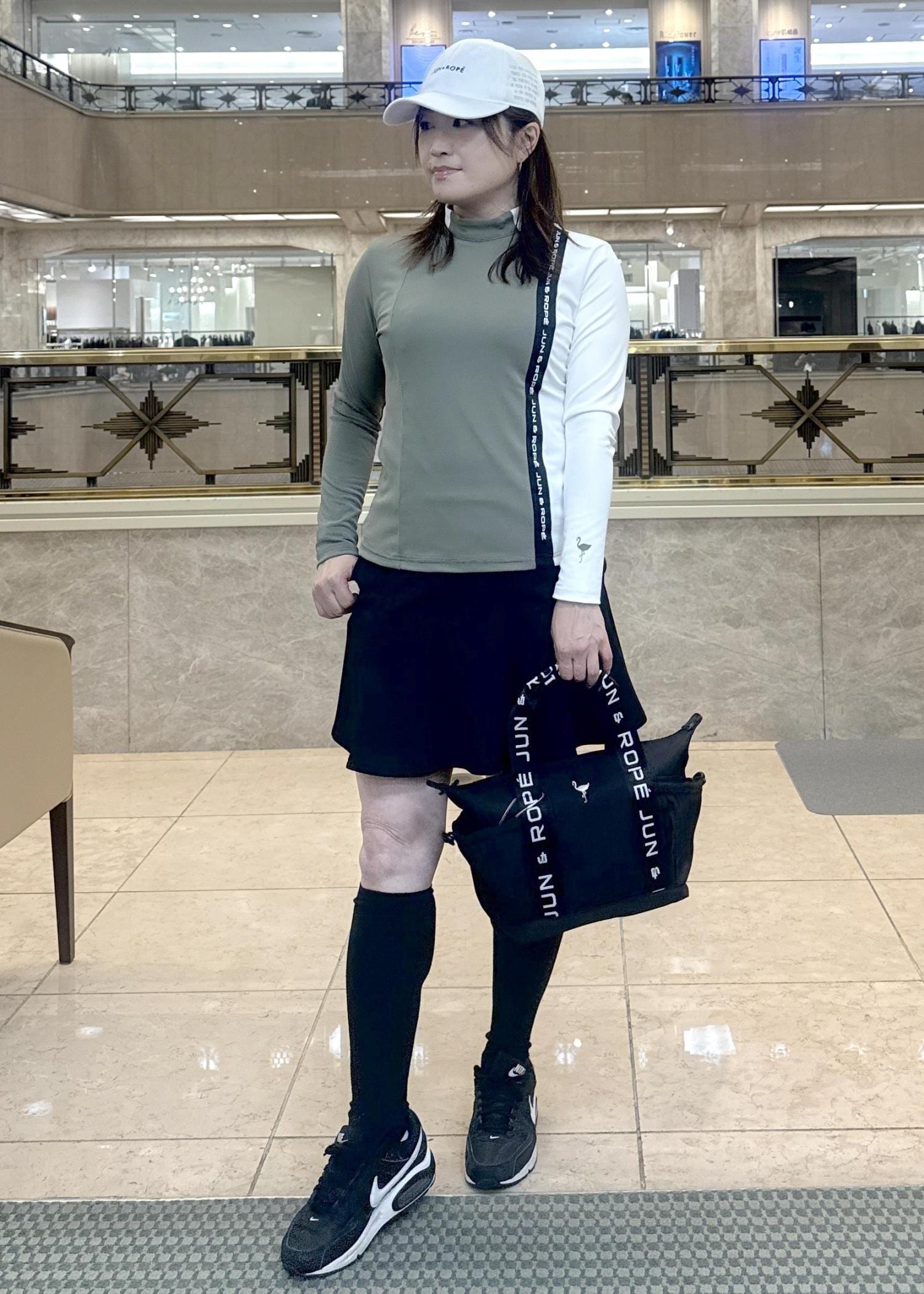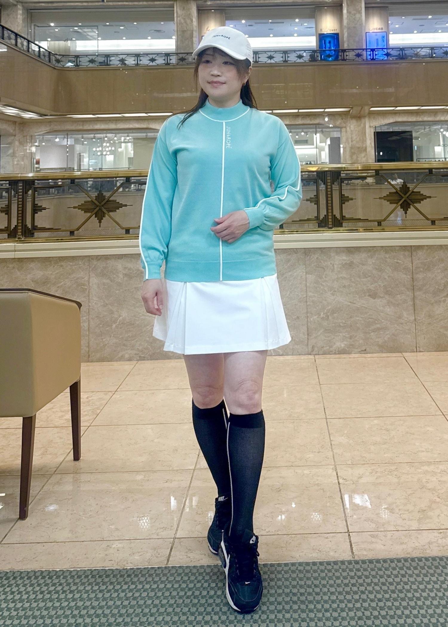ボトムにはふんわりスカートを合わせましたが、着丈が短くな