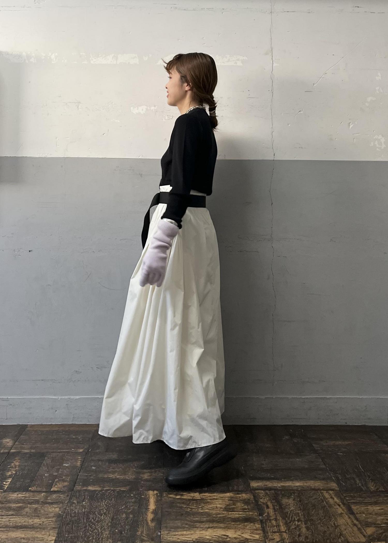 シャカシャカしたポリエステル素材で光沢感があるので、冬のウールアイテムとの異素材合わせがとっても可愛いですよ♡
