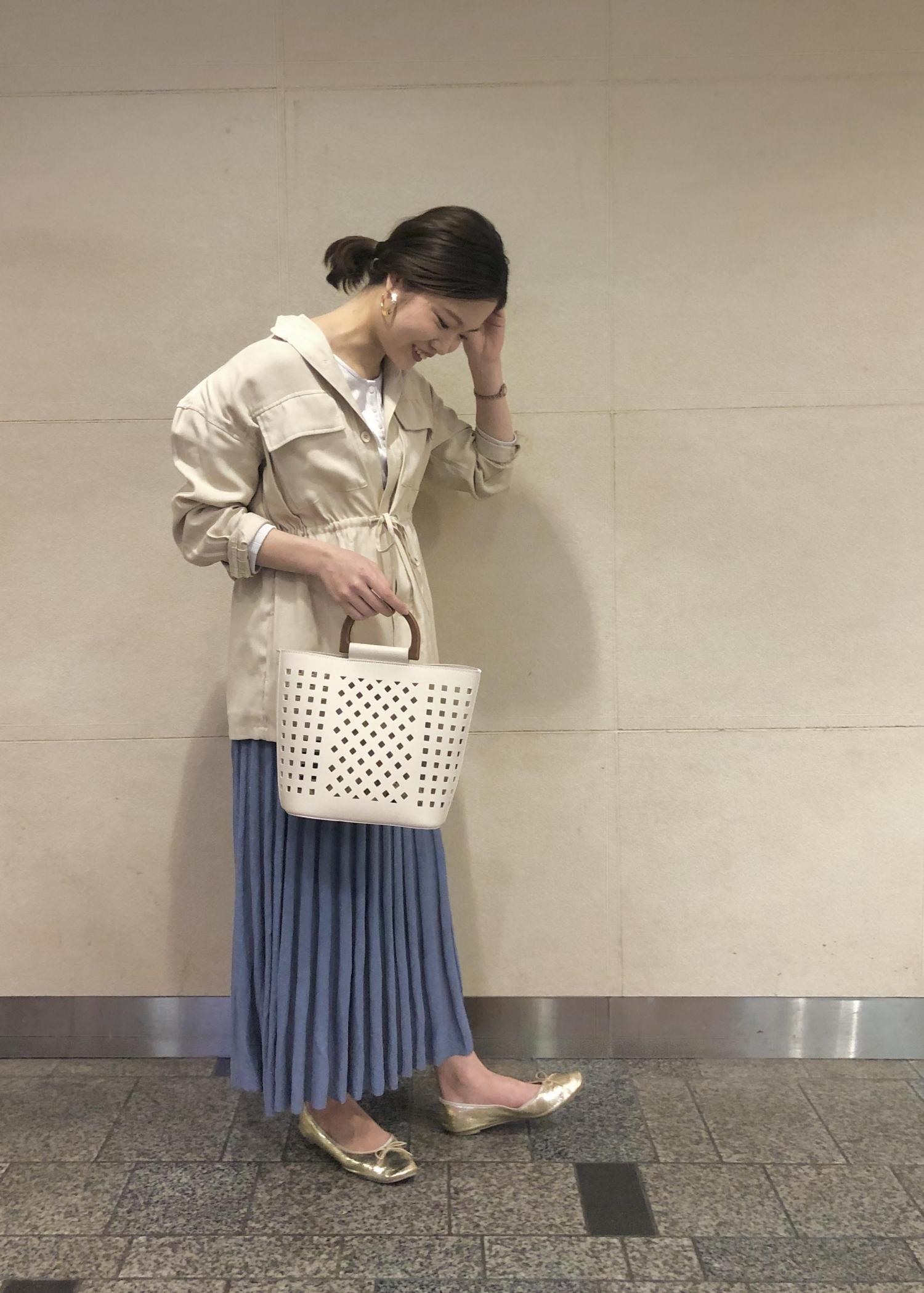シンプルになりすぎないよう長さのあるネックレスをつけポイントに♫