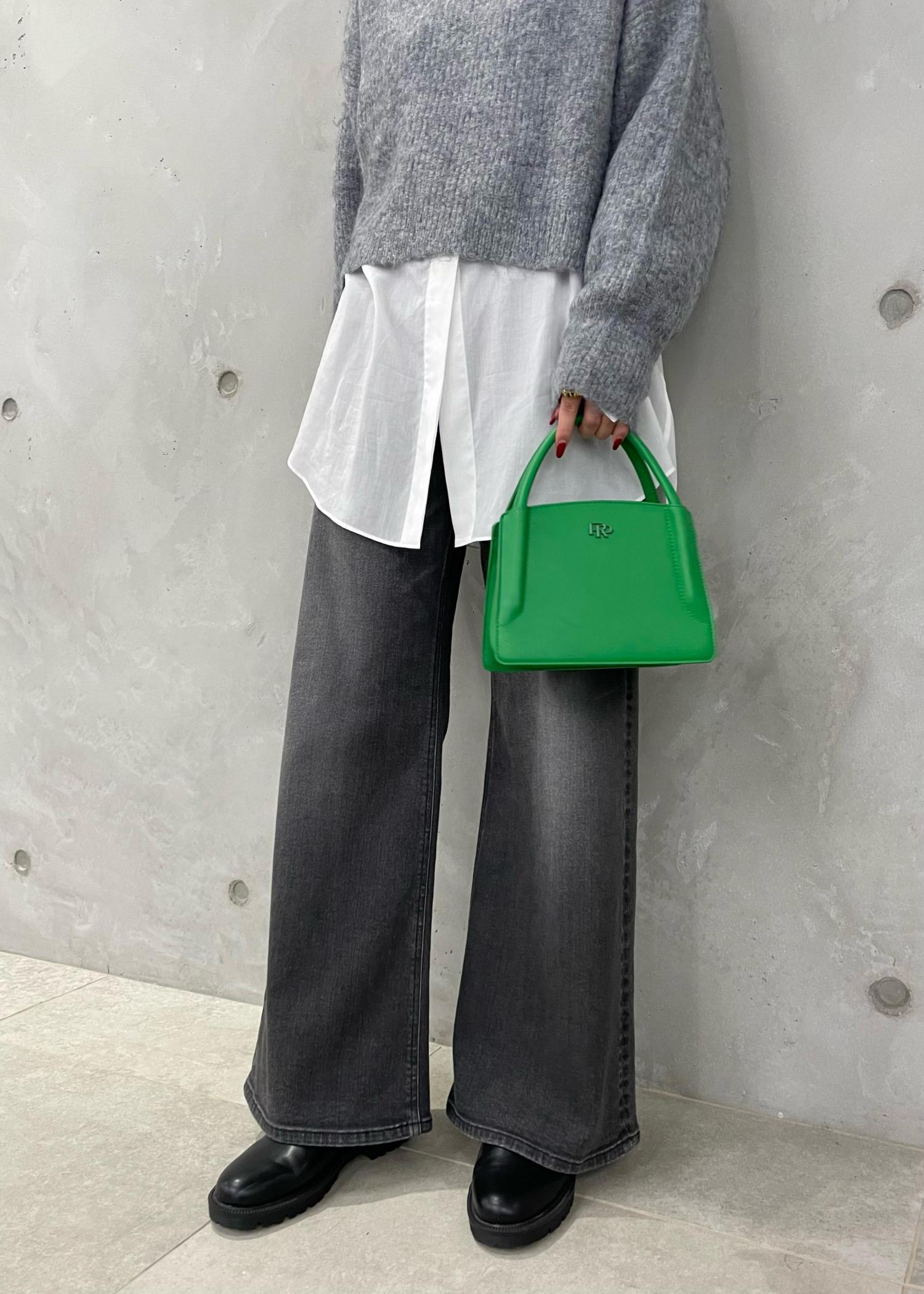 全体的にモノトーンで統一させ、バッグで差し色を合わせた