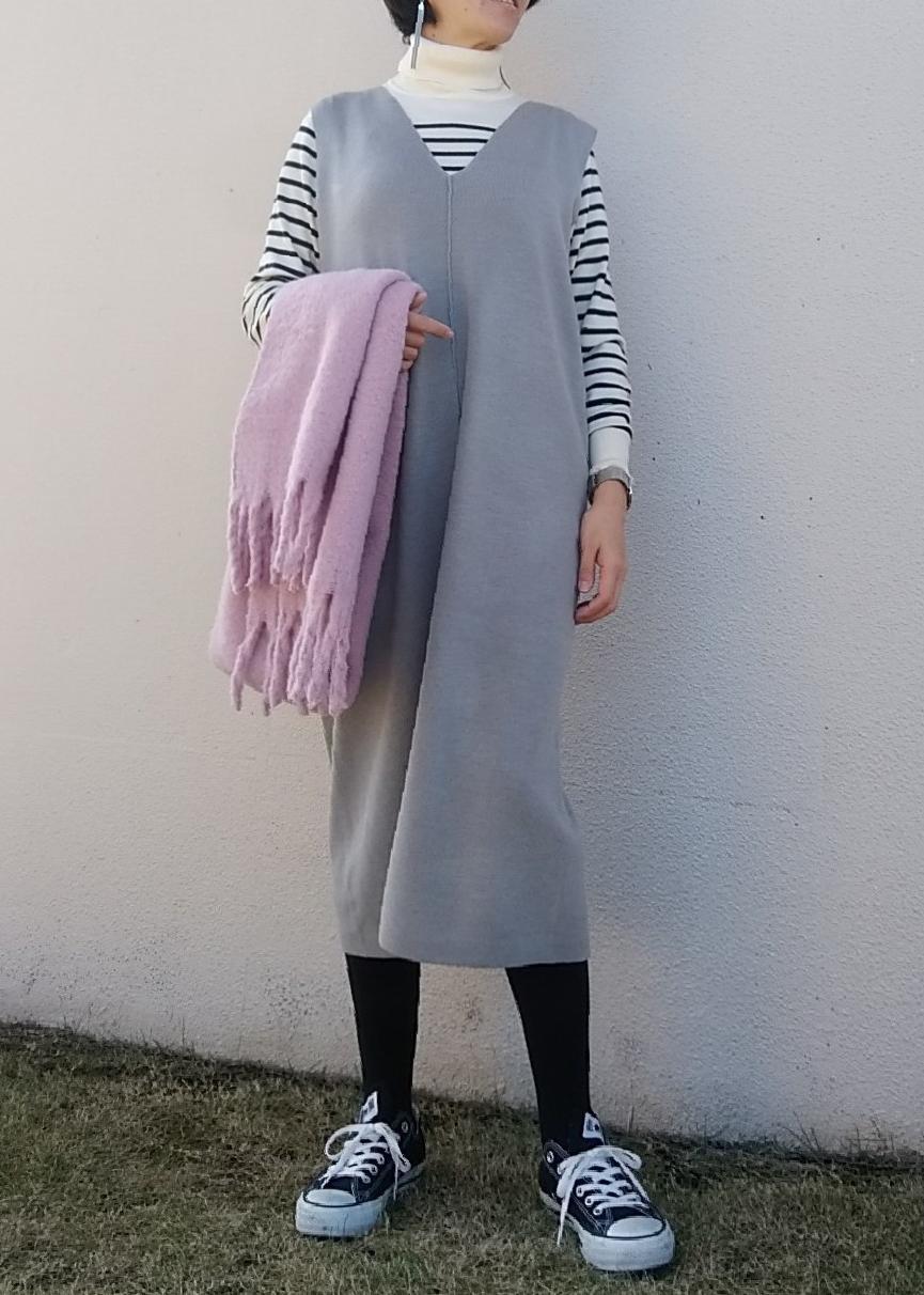 ニット素材のジャンスカは、ゆったりしたシルエットで体のラインを拾わず安心して着れ、柔らかく動きやすいので休日スタイルにおすすめです。ブラウスやブーツを合わせると綺麗めスタイルも楽しめます。デイリーに使いやすくて1枚あると便利です。