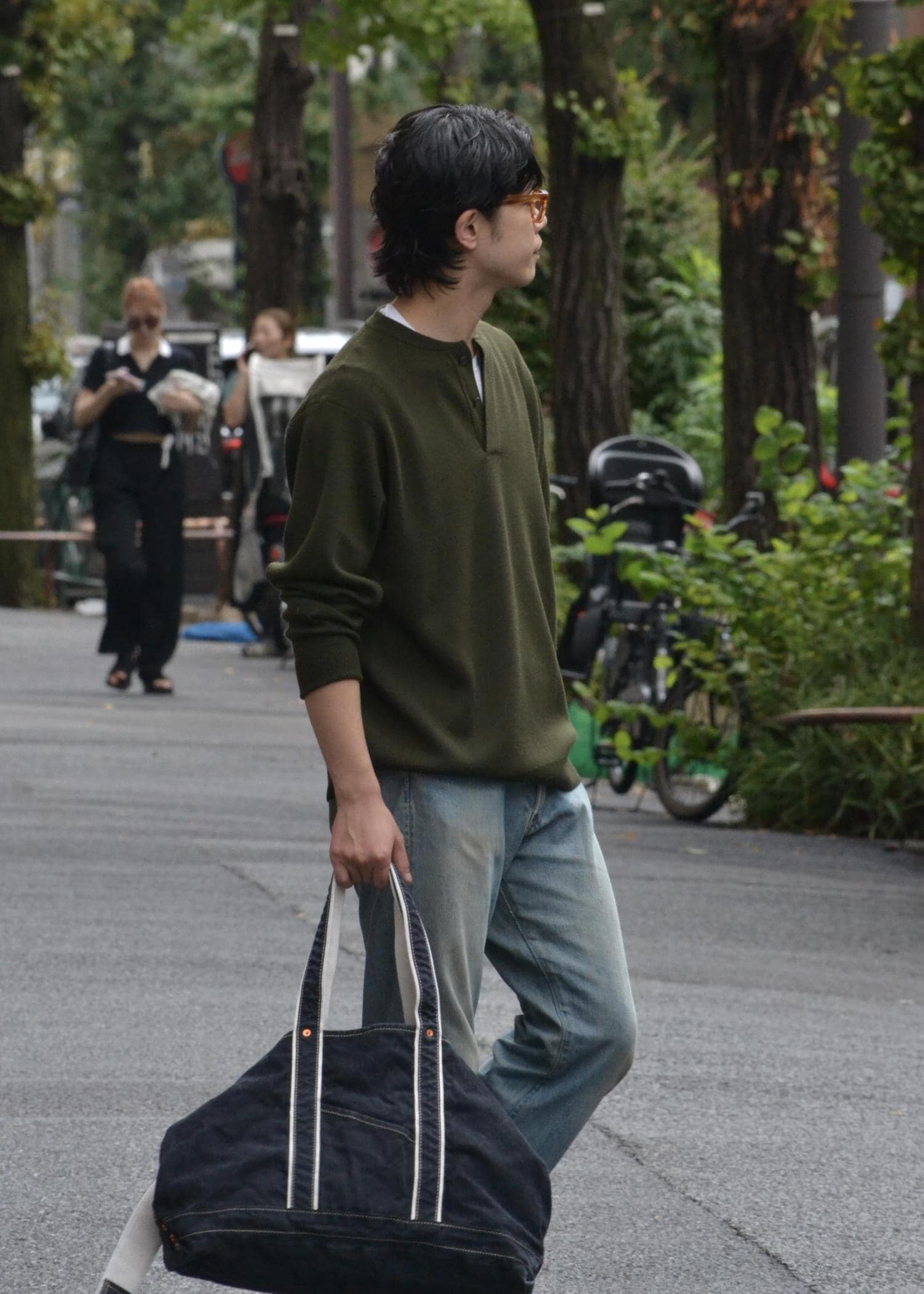 40年代のバルカラーコートをベースに肩傾斜とラグラン線に拘った一着ですが、生地の厚さと相まって非常に立体的に仕上がっておりアームやAラインのシルエットが綺麗に出ております。