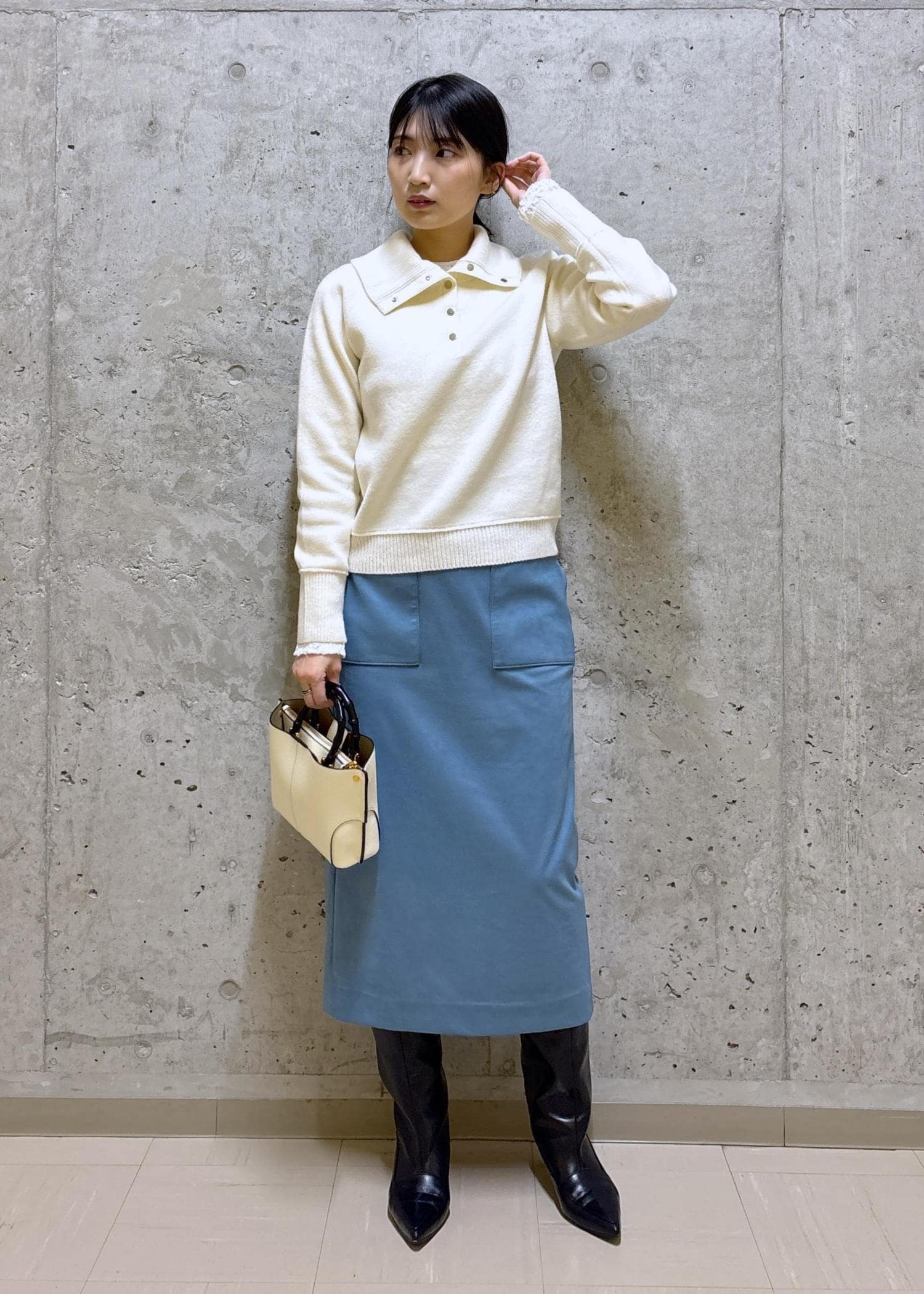 全体的にゆったりとしたシルエットのアイテムですがメリハリがあり低身長でも大きく見えず着用できます。