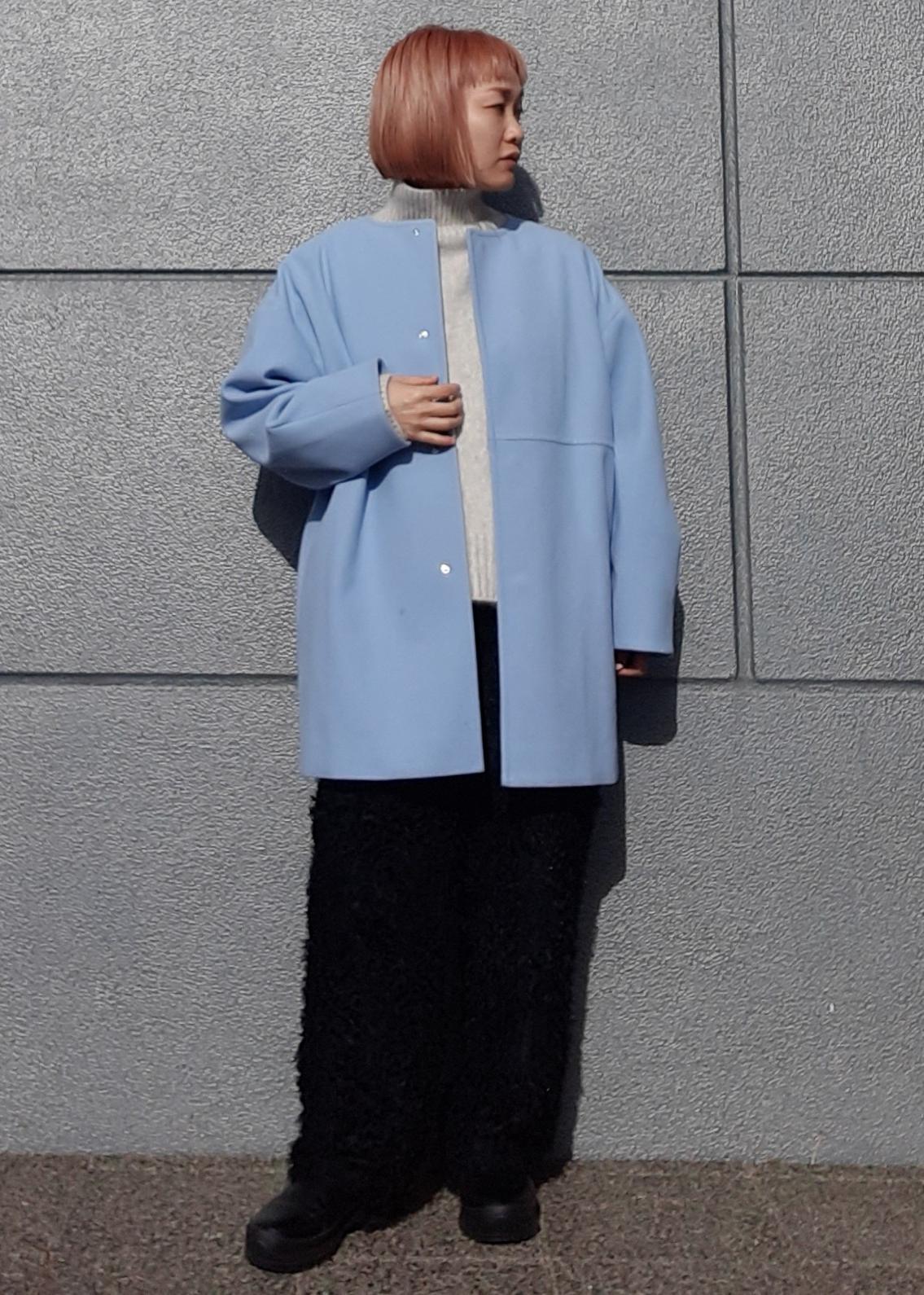 上半身がダボっとメンズライクになったのでボトムはスカートに◎