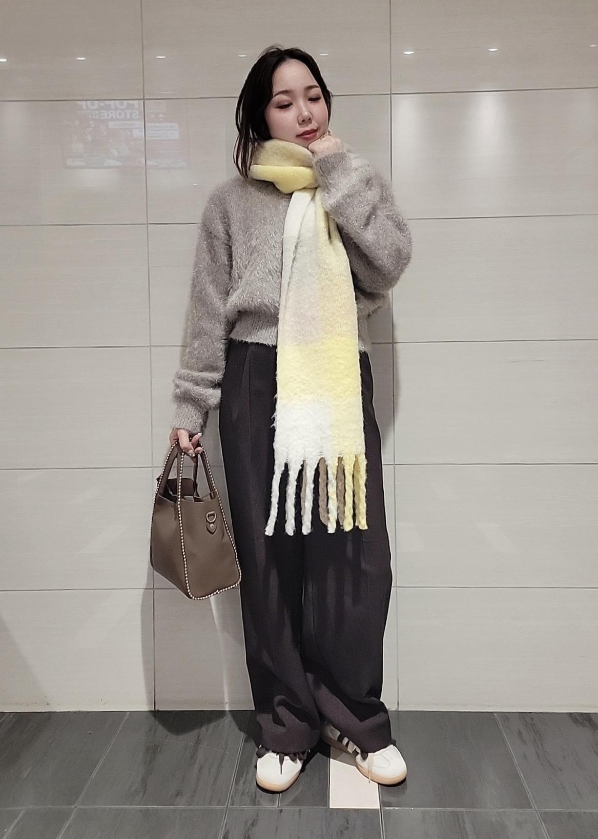 マウンテンパーカーにシアー感のある軽い楊柳シフォン素材に春らしいカラーの幾何学柄プリントをのせたプリーツスカートを合わせて少し女性らしいスタイリングに仕上げました☺︎