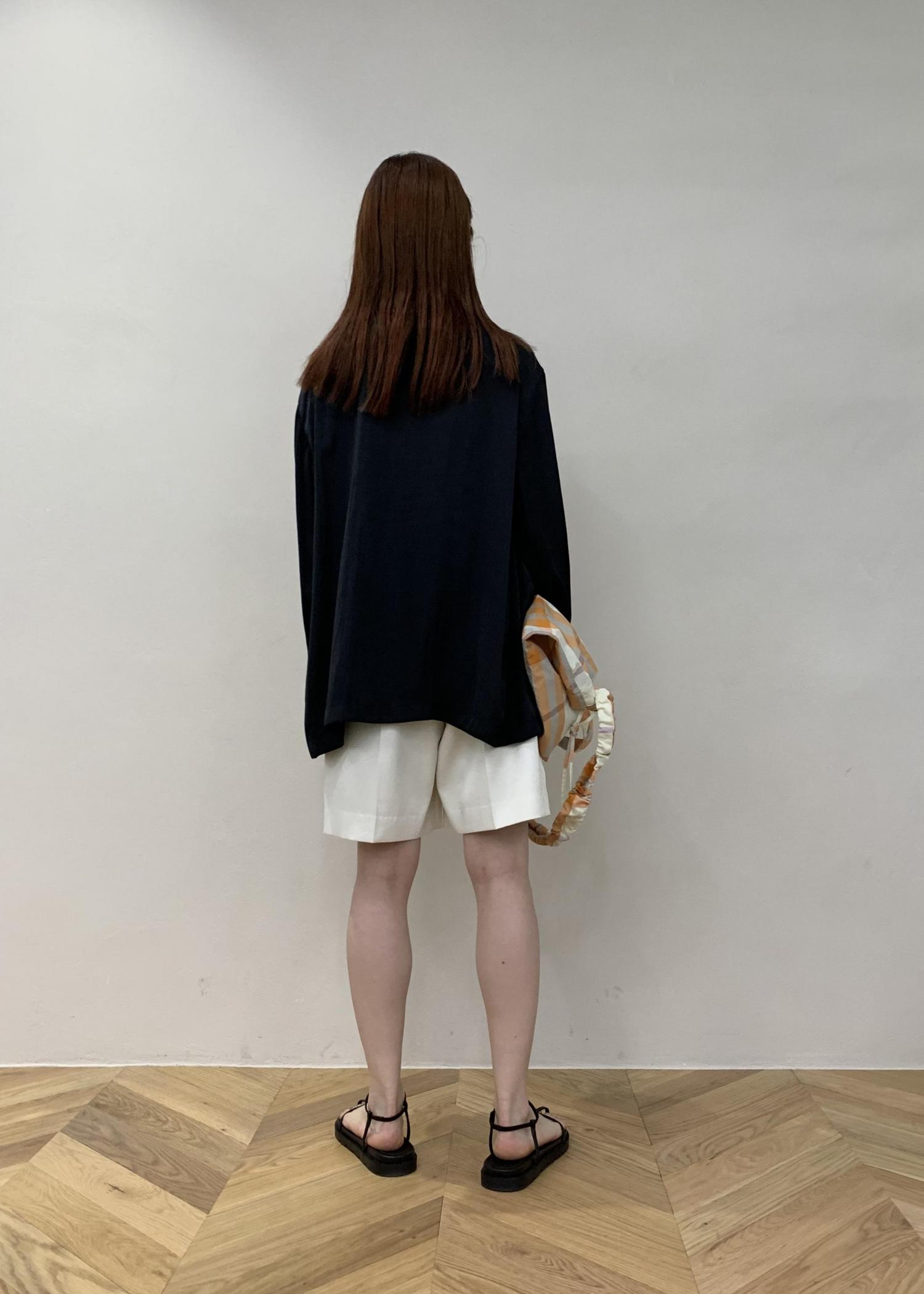 程よい肉感でシルエットが綺麗なサテンハーフパンツは、サラッとリラックス感のある着用感。腰回りもゆったりめなので大人が着やすいハーフパンツです◎