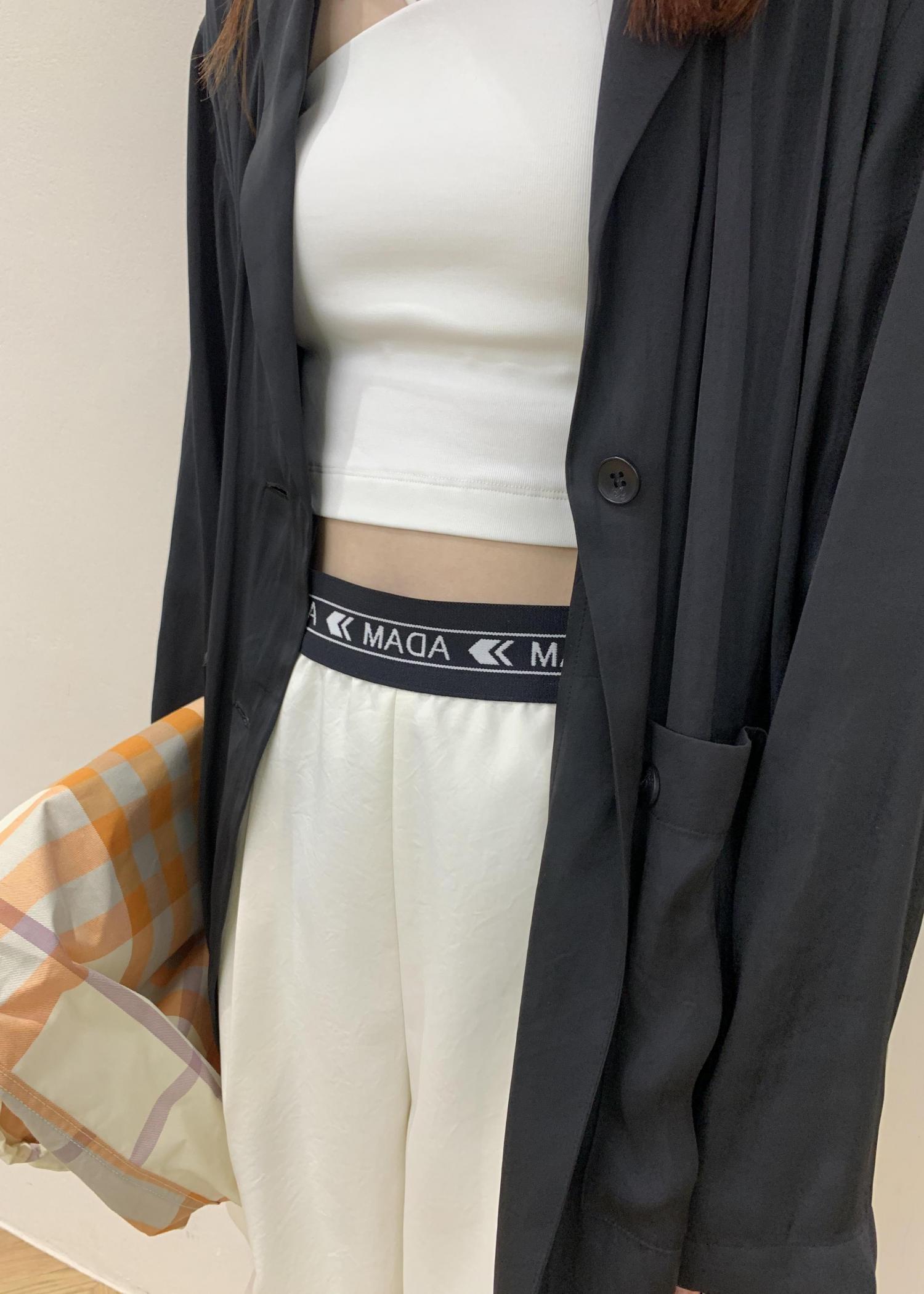 中に合わせたキャミソールは、丈が短めでヘルシーな肌見せが叶うデザイン。他のコーディネートでも大活躍で、色違いで欲しいくらい万能です、、♡