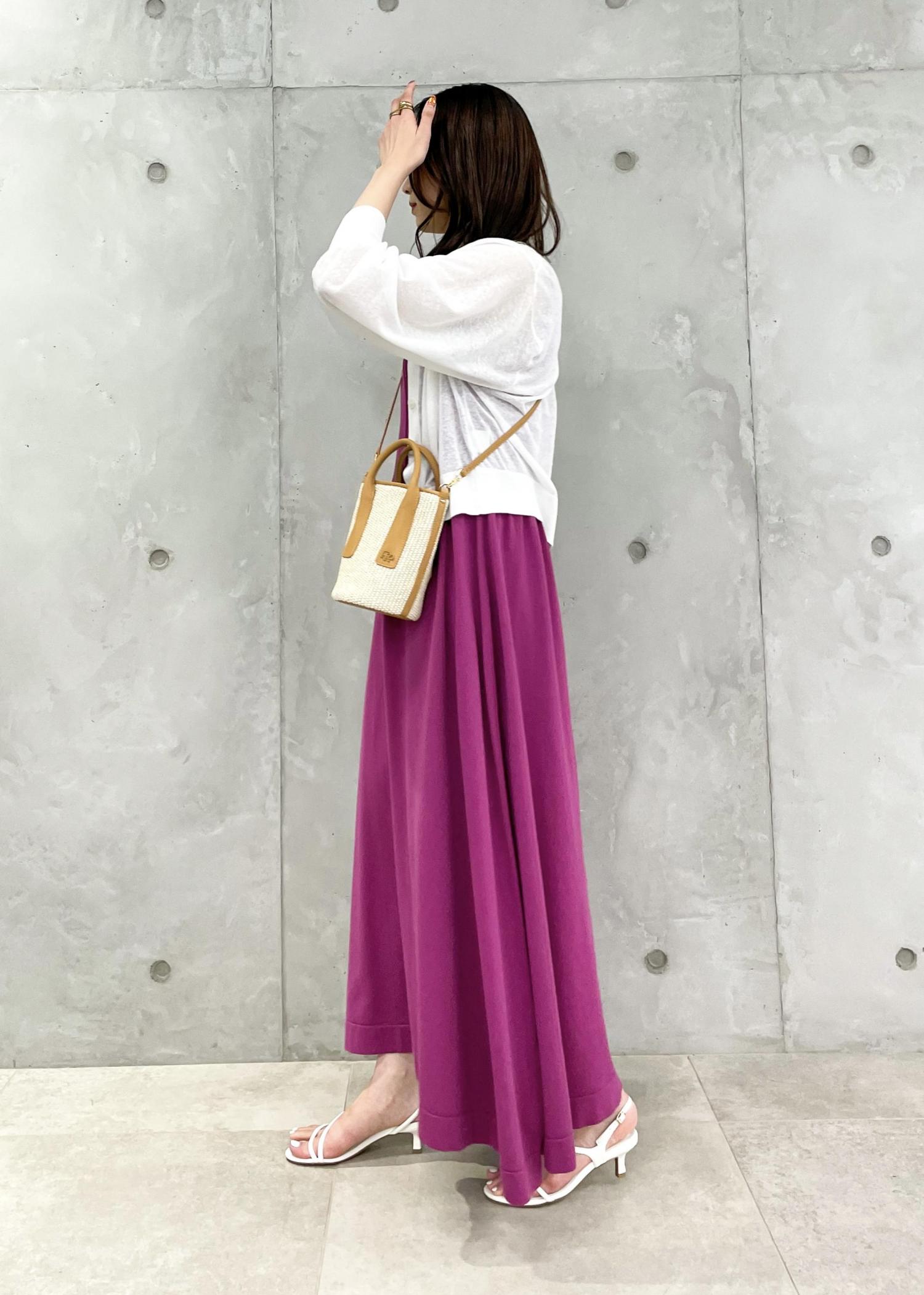華奢なデザインなのでワイドパンツ合わせもオススメ。ロング丈の物を合わせると抜け感がでてお洒落な印象に。