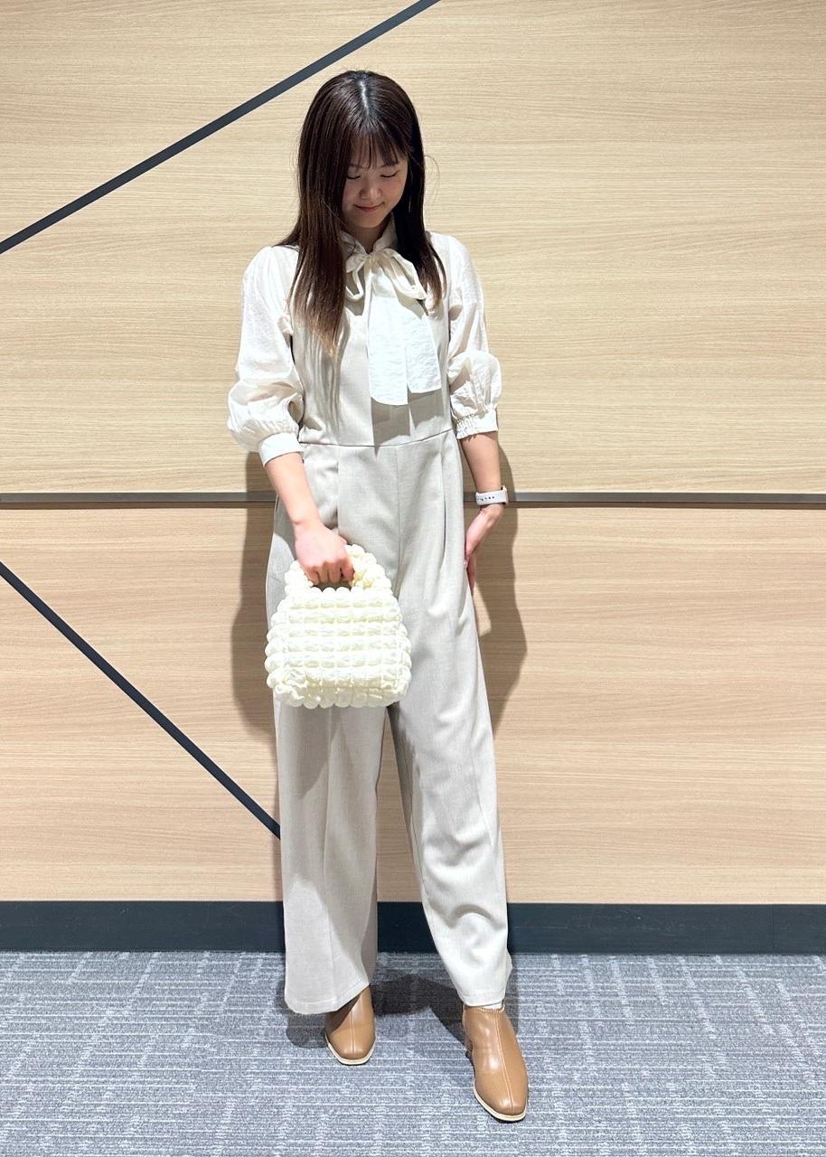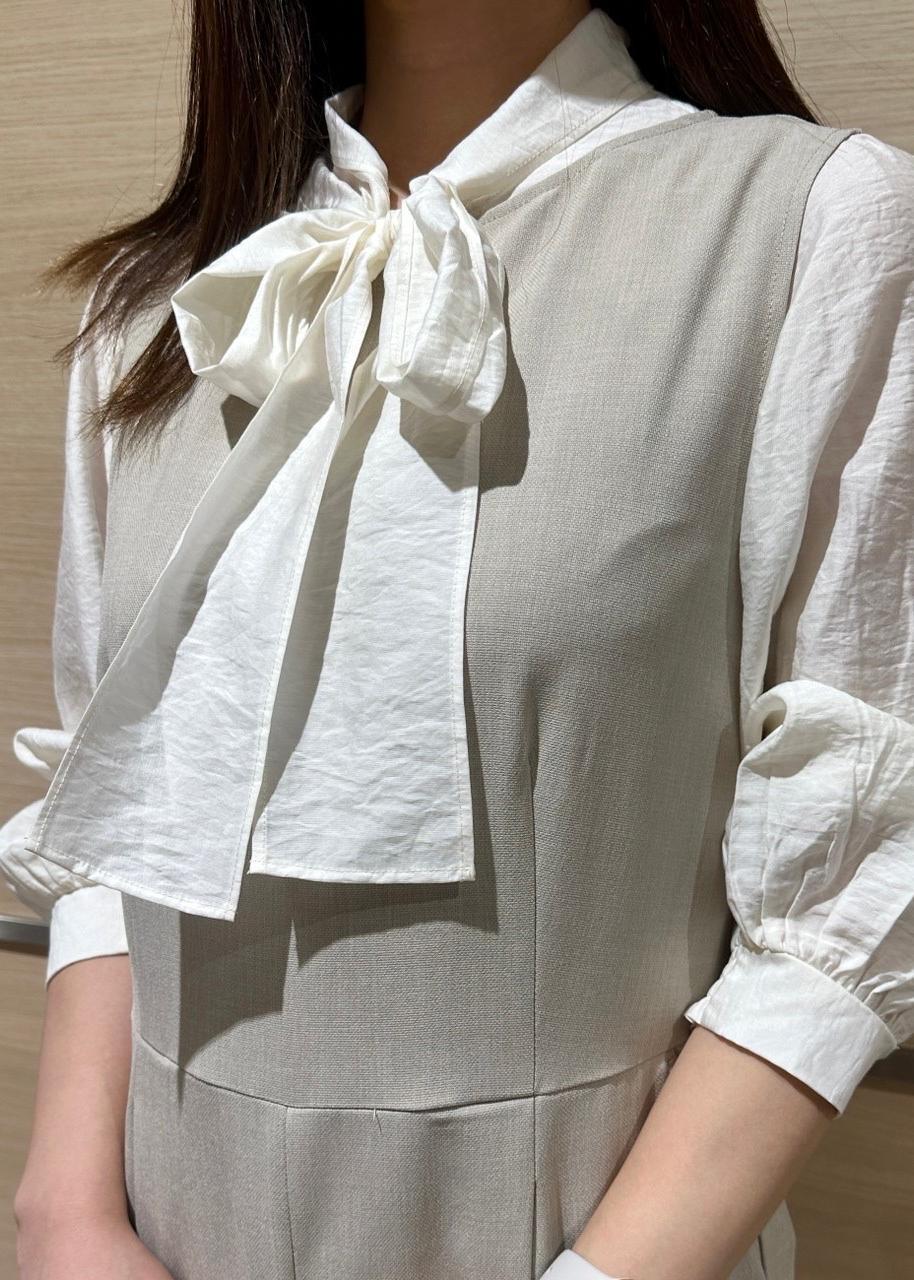 シアーのリボンブラウスは大人可愛くご着用いただけます。