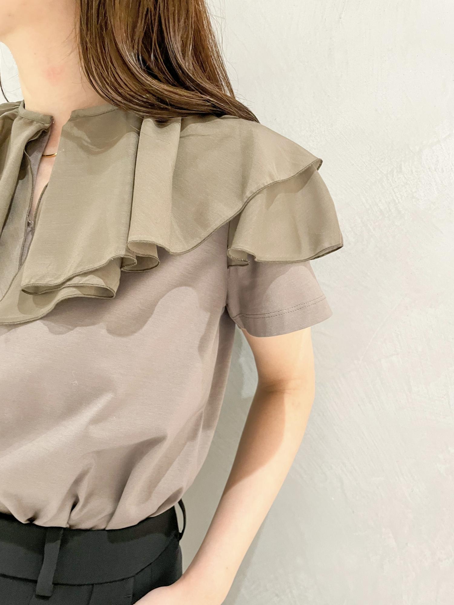ラッフル襟が苦手な方にもおすすめしたいトップスです!
