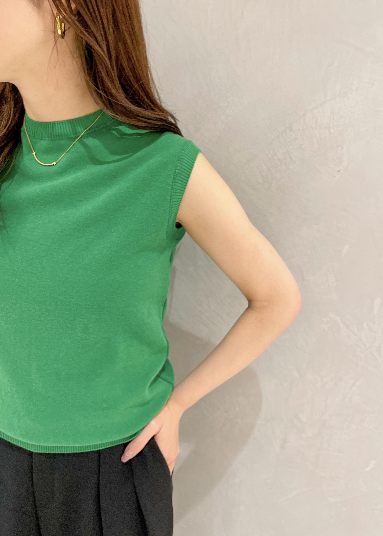 シンプルなコーディネートですがグリーンカラーを主役にすることでお洒落な印象に。