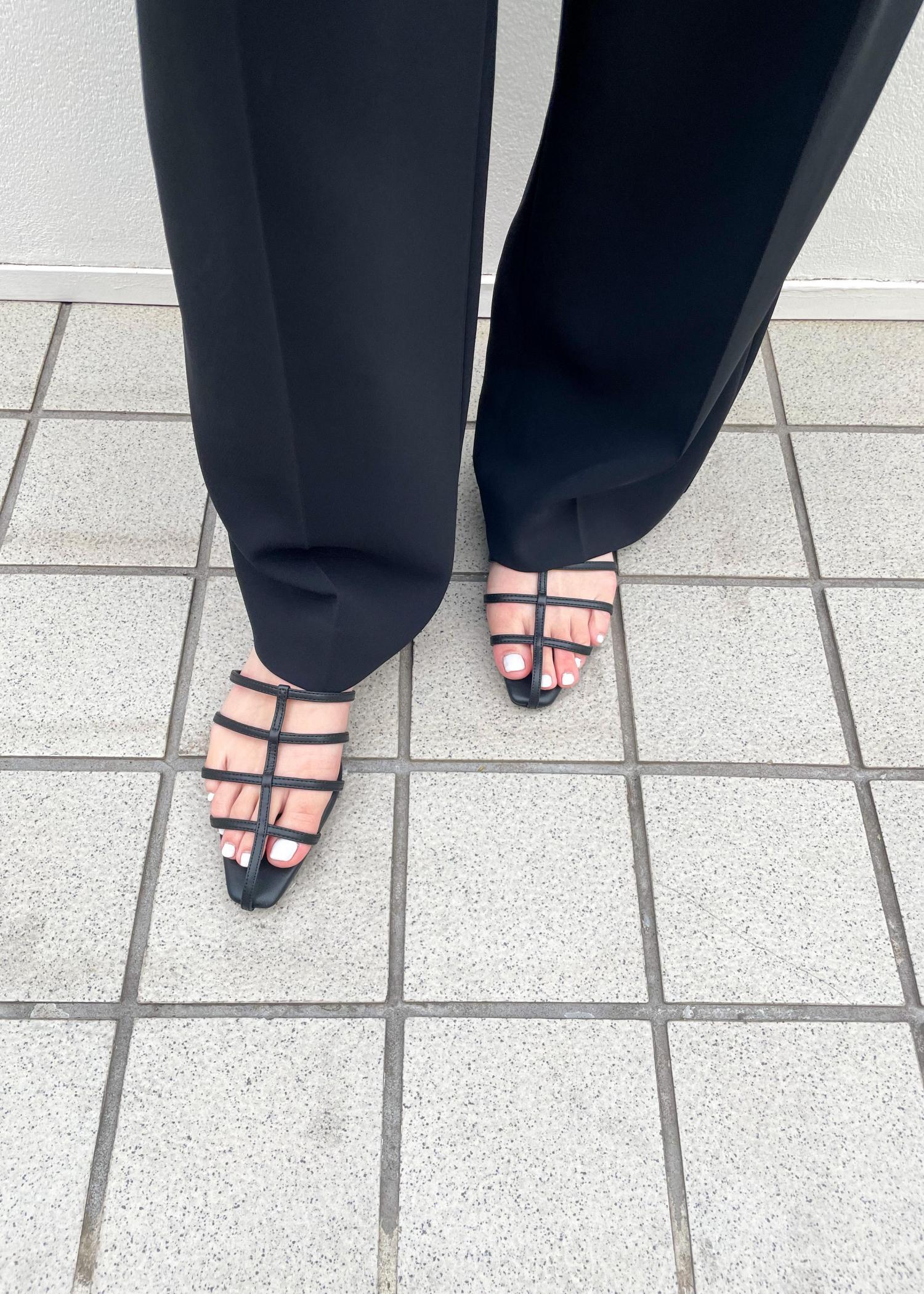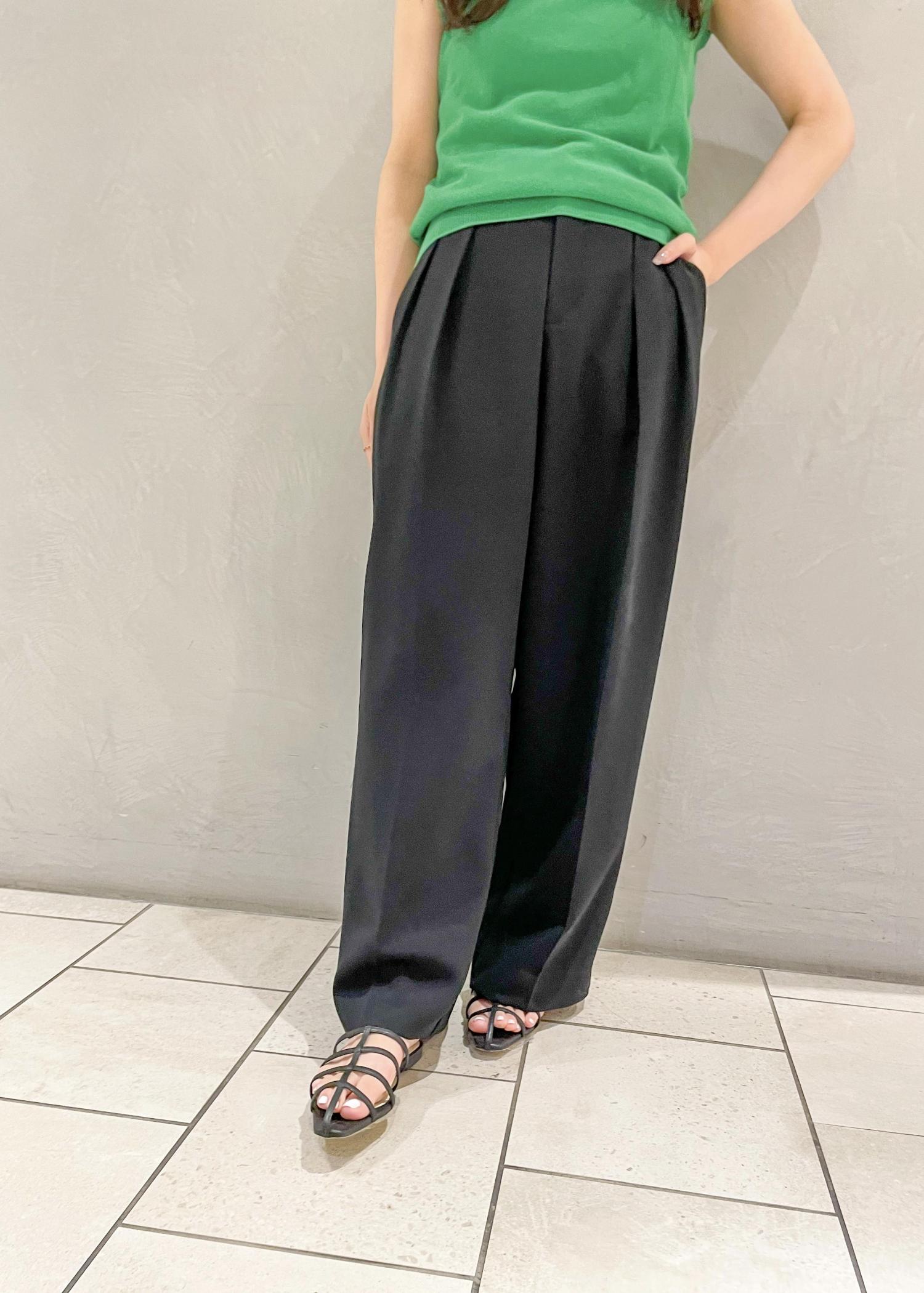 ボトムはシワにもなりにくく腰回りがすっきり見え、程よい太さで脚のラインを拾わないので美脚効果抜群!