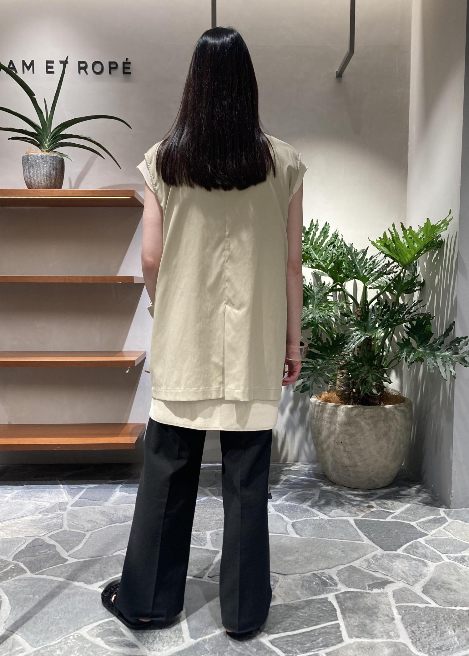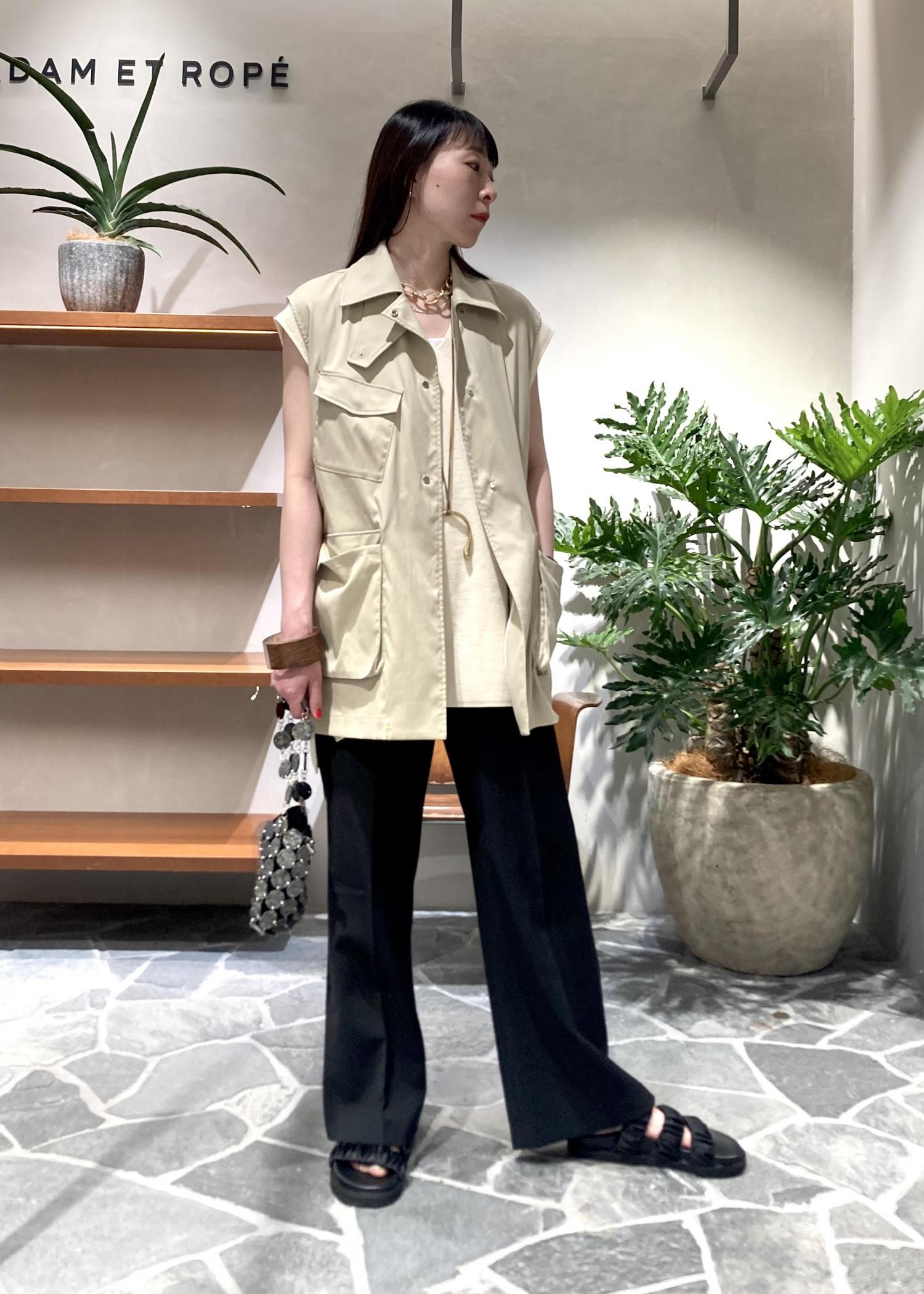 ジレがチノ素材で少しカジュアル見えするので、履き心地抜群で美脚効果のあるスラックスと合わせました◎