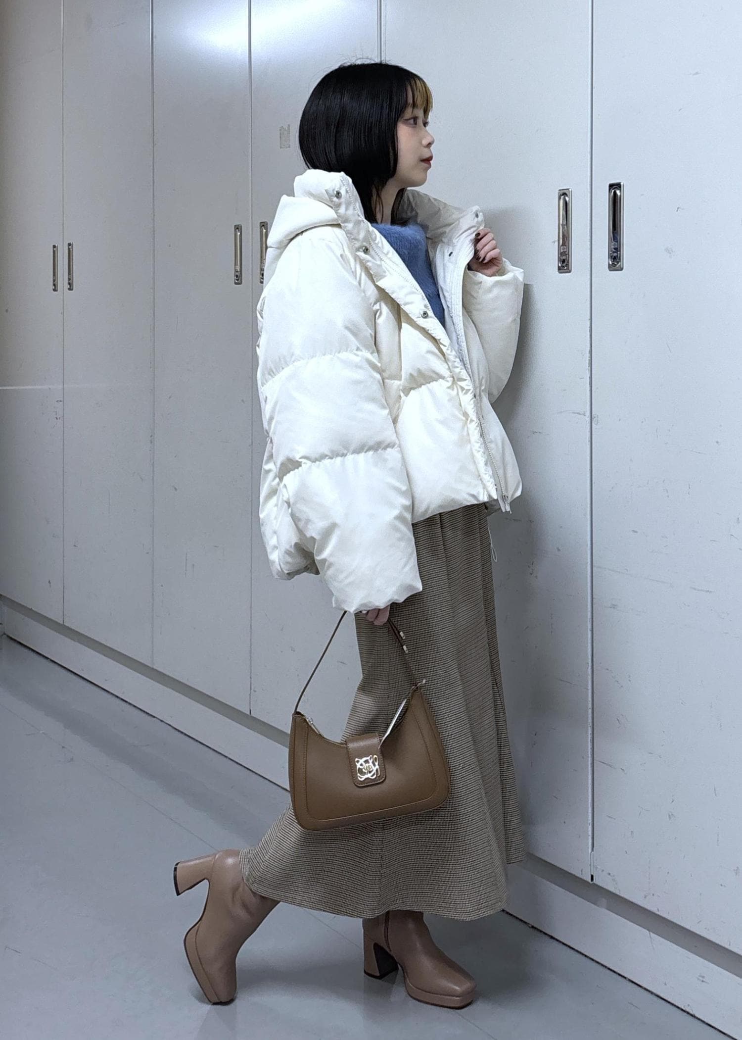 肌馴染みの良いベージュと白のカーディガンでイエベさんはトーンアップするカラーコーデです♪