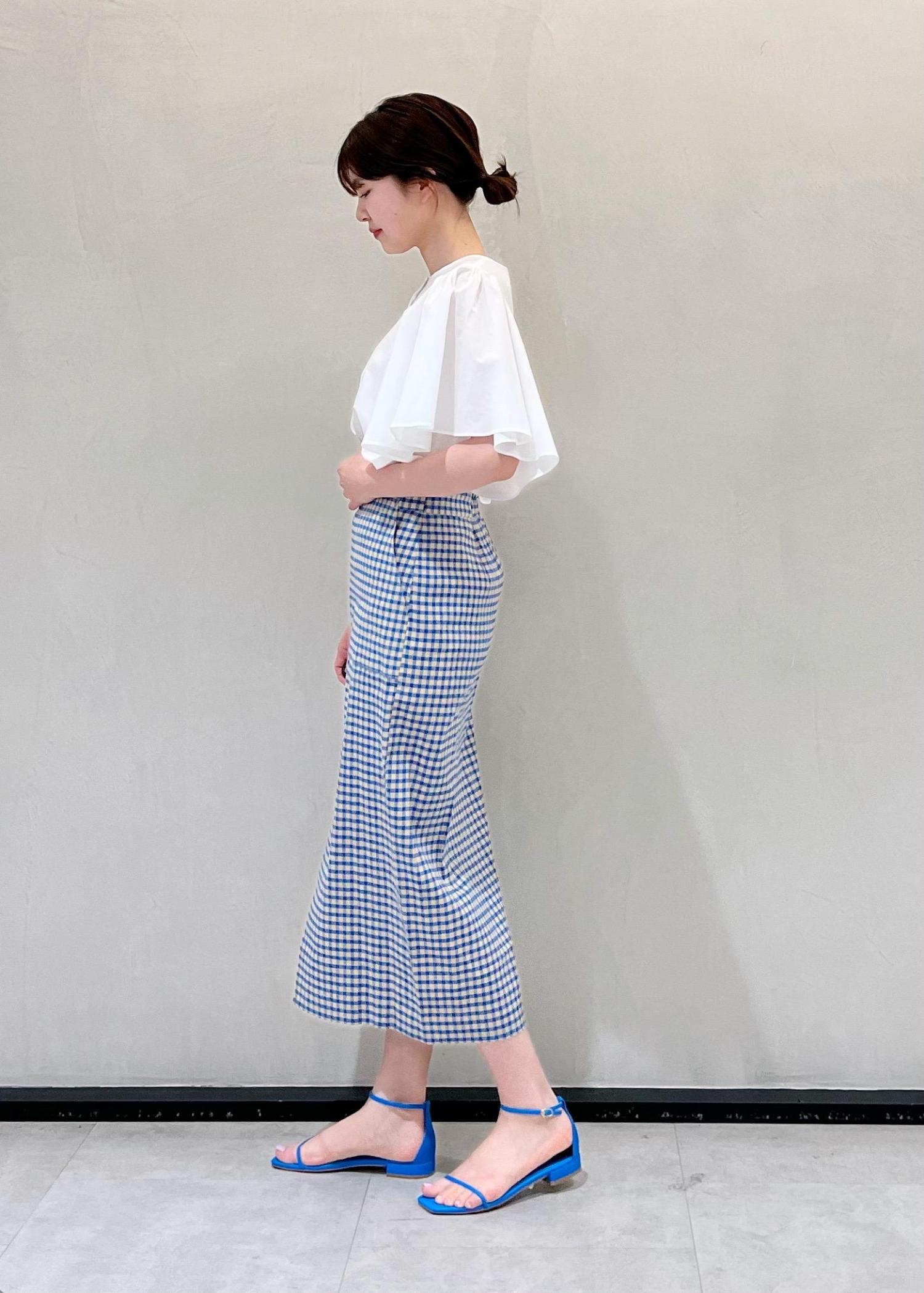 着丈は足首あたりの丈感で、靴はフラットでもヒールでもバランス良くお召し頂けけます。