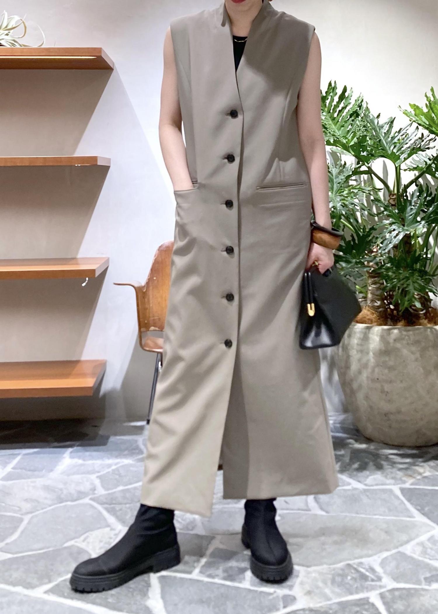 前回に引き続き、ノーカラーベストワンピースの着回しコーディネートです◎