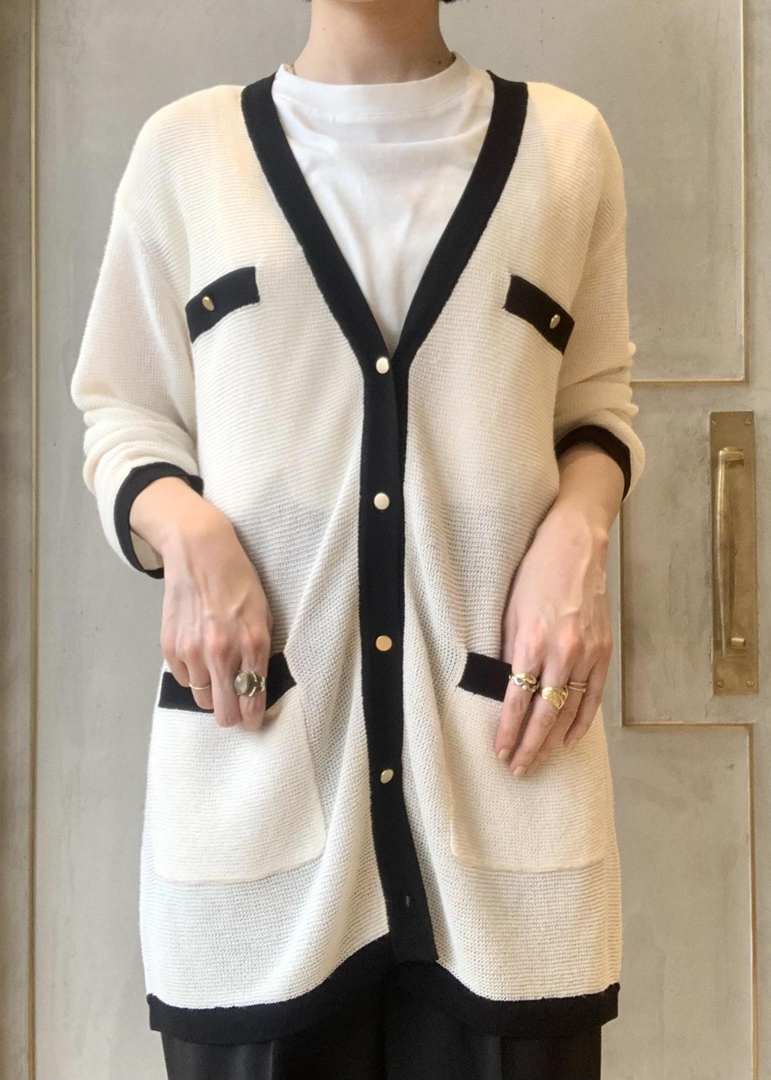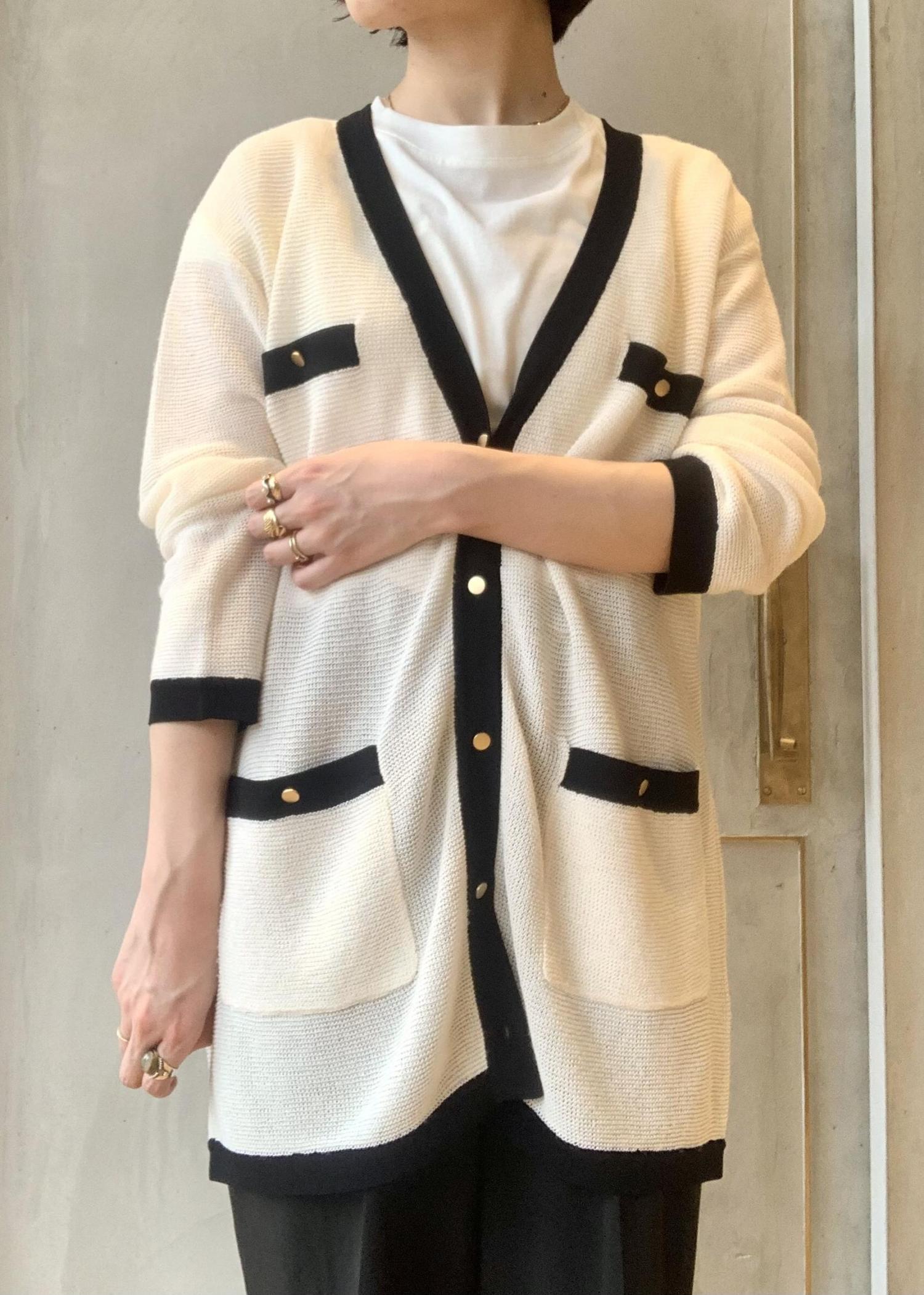 ペーパーヤーン素材のクラシカルデザインカーデ