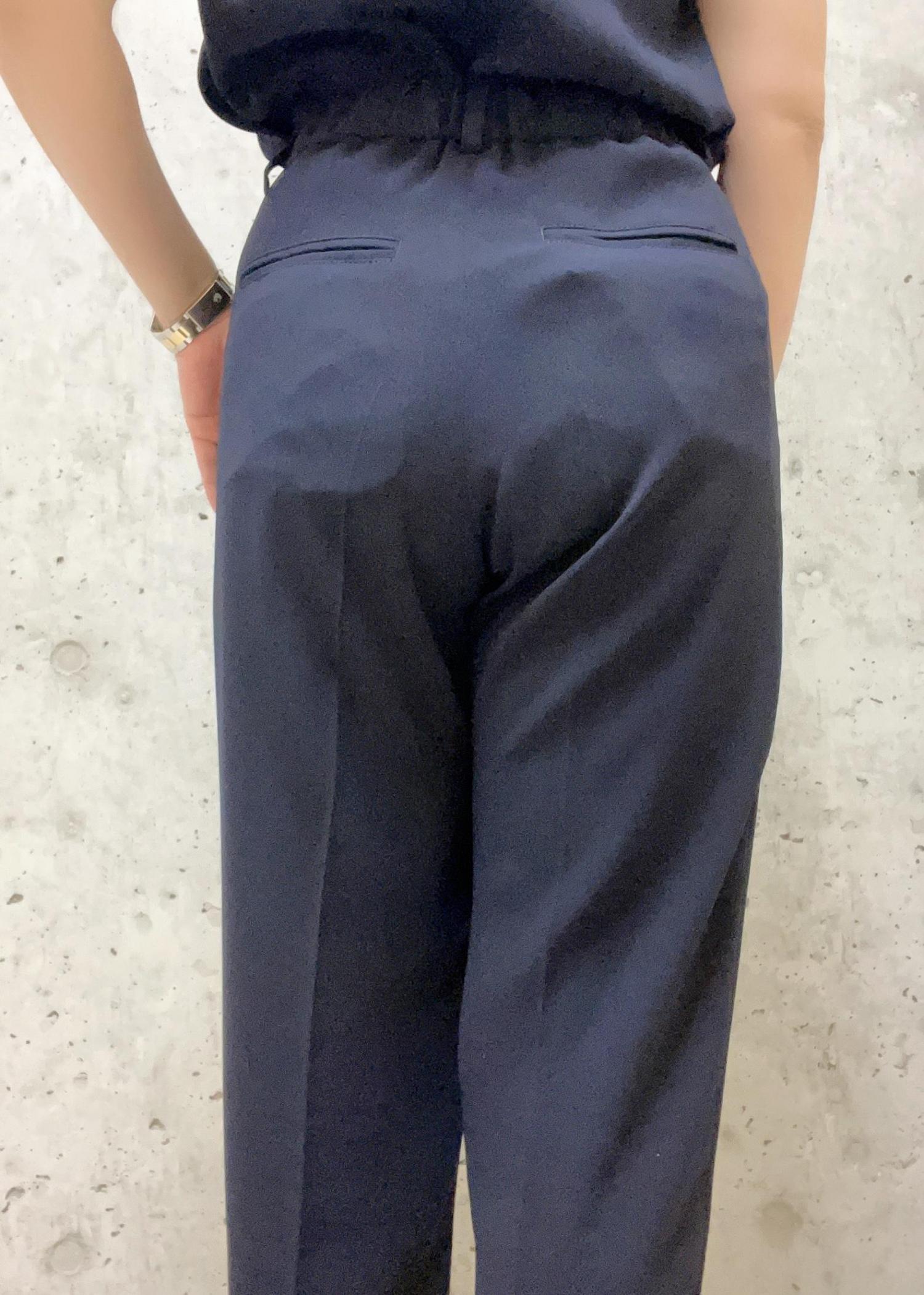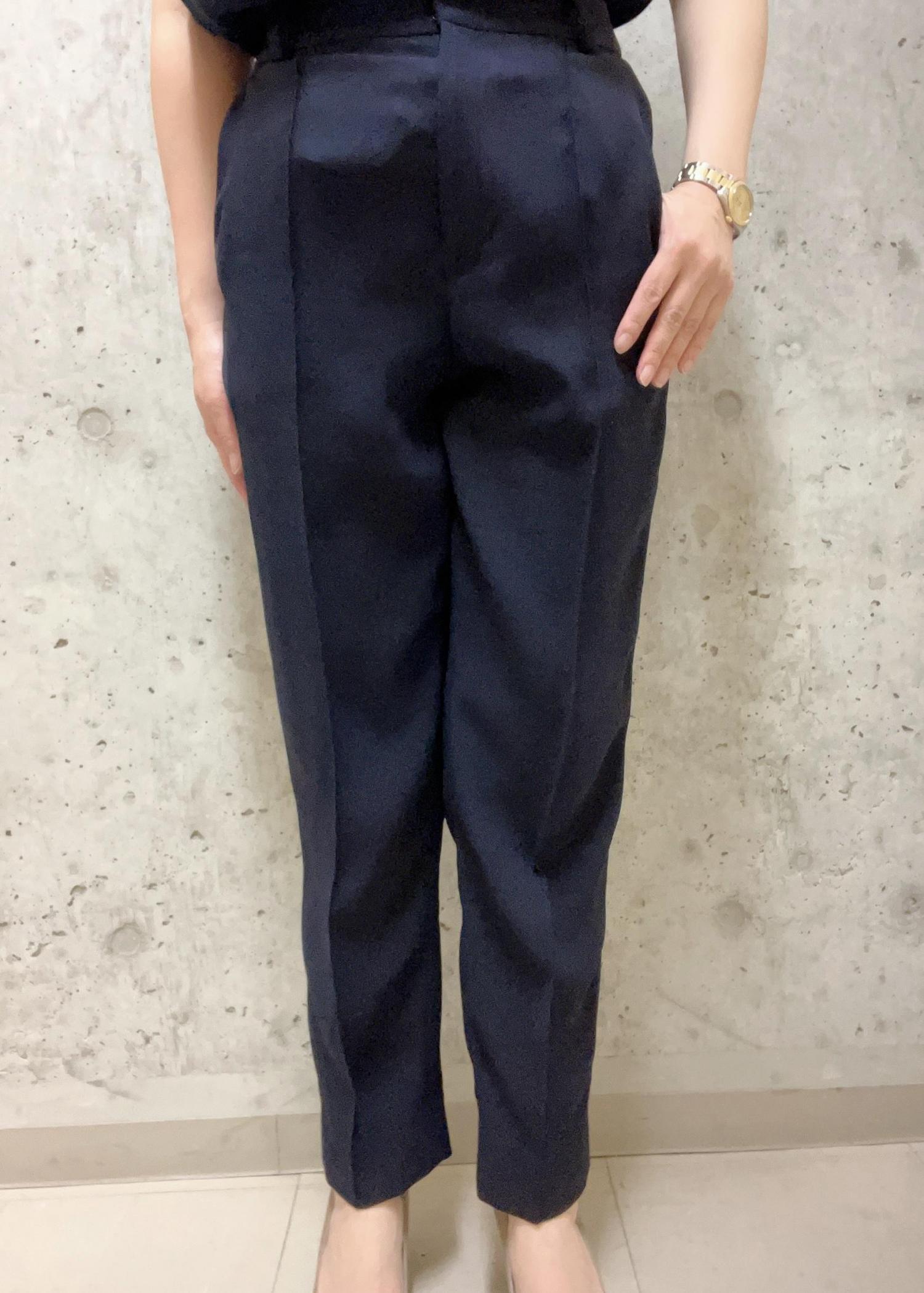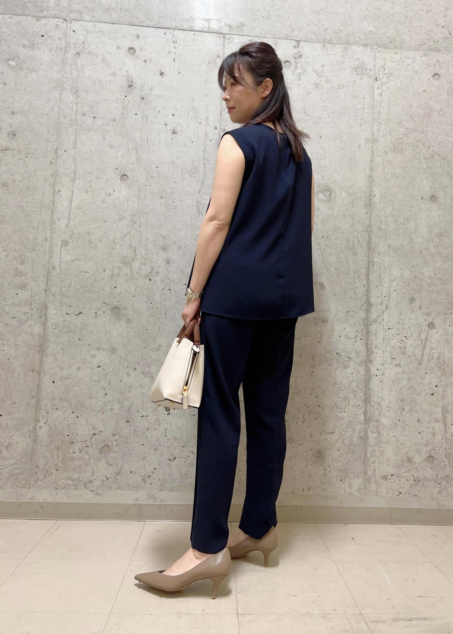 シンプルなネイビーのセットアップはお仕事にも、パールのネックレスを付けて結婚式などにも使える1セット持っているととても便利なアイテムです。