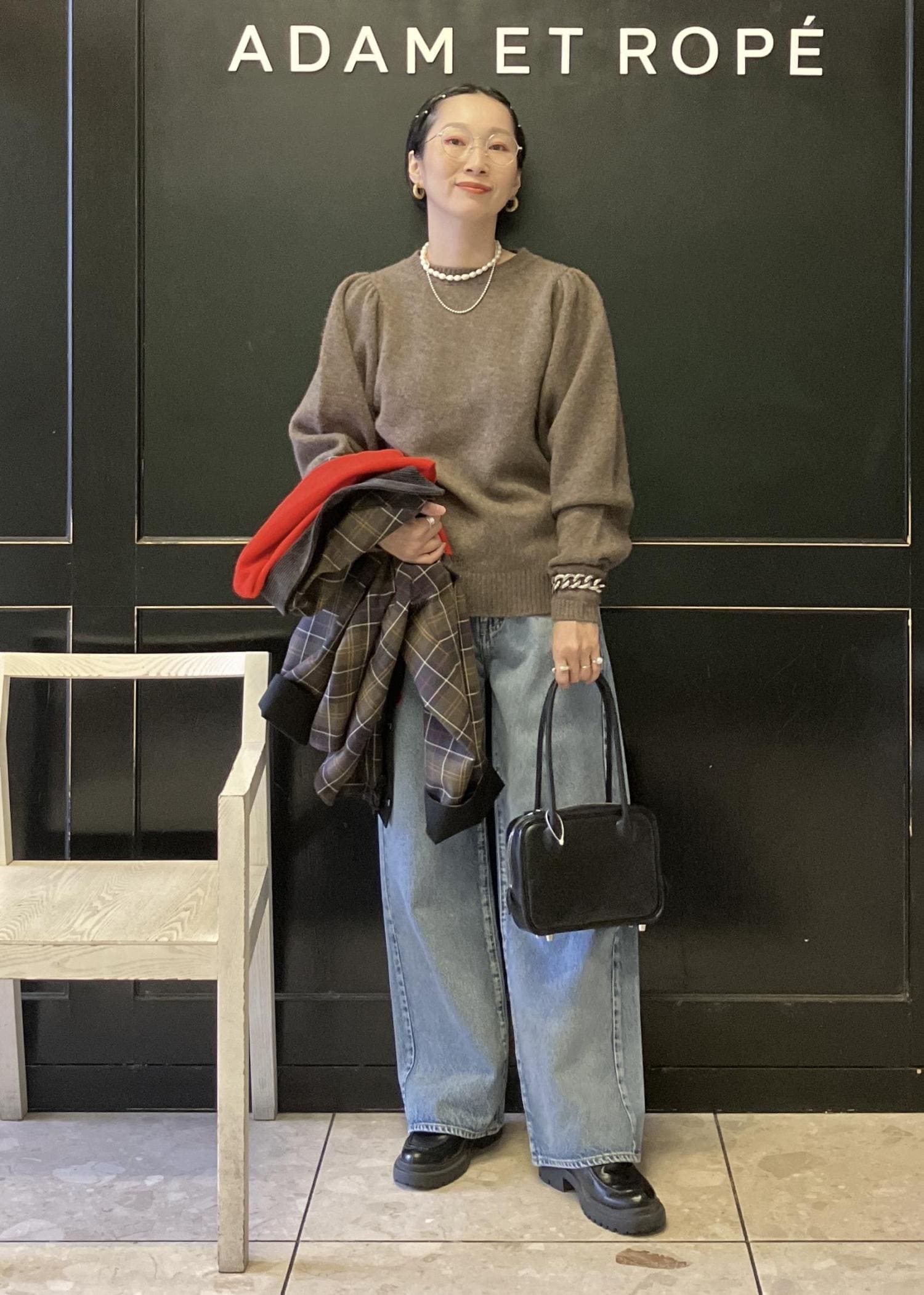 柔らかいシャツの様な素材感で、カチッとしすぎずラフに普段使いしやすいのが良いです。また、お尻の隠れる長めの着丈なのも、タイトシルエットと合わせた時も安心感があり、嬉しいポイントでした!