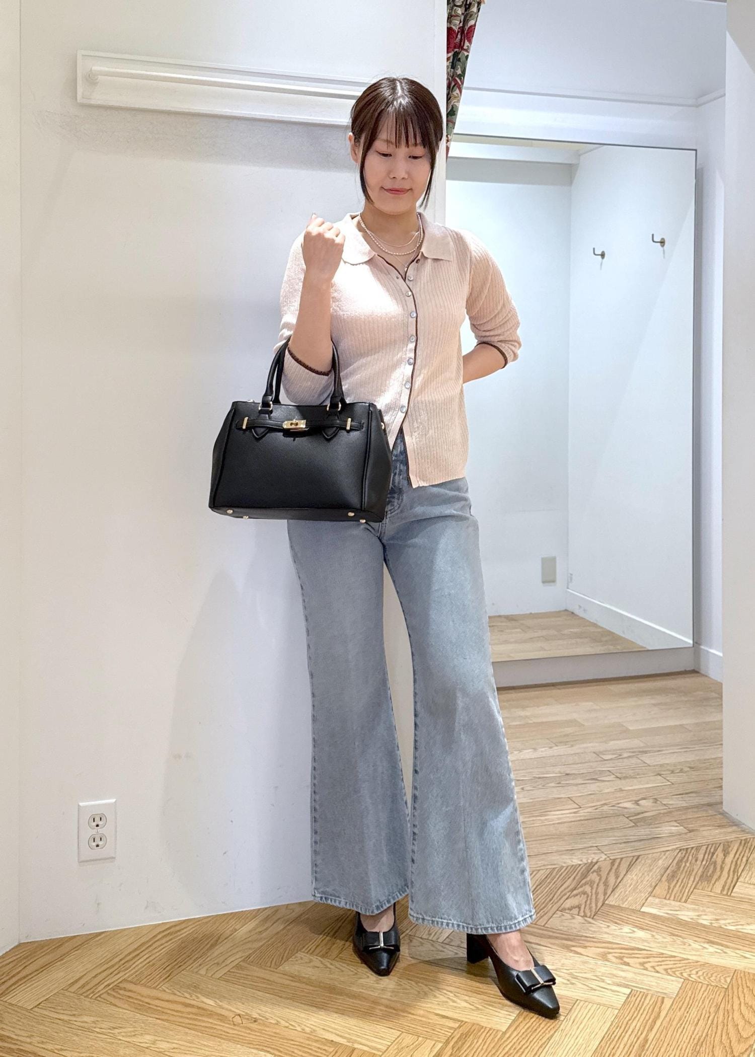 骨格ウェーブだからタイトスカートが似合わないという方は、足首が除くくらいの丈感で履いていただくと、バランスよくコーデがきまります◎