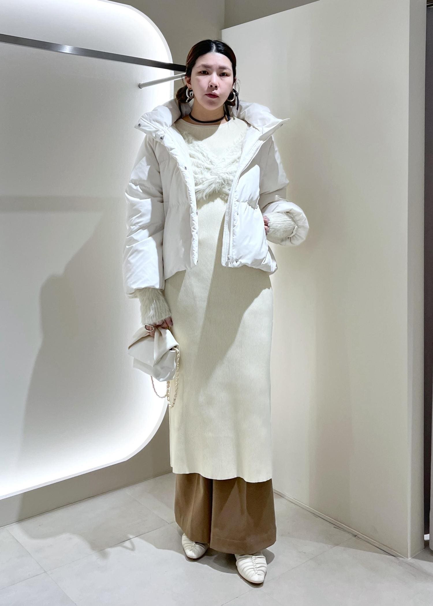 ワンピースは胸元の位置を下げて着ることで大人っぽい印象で!