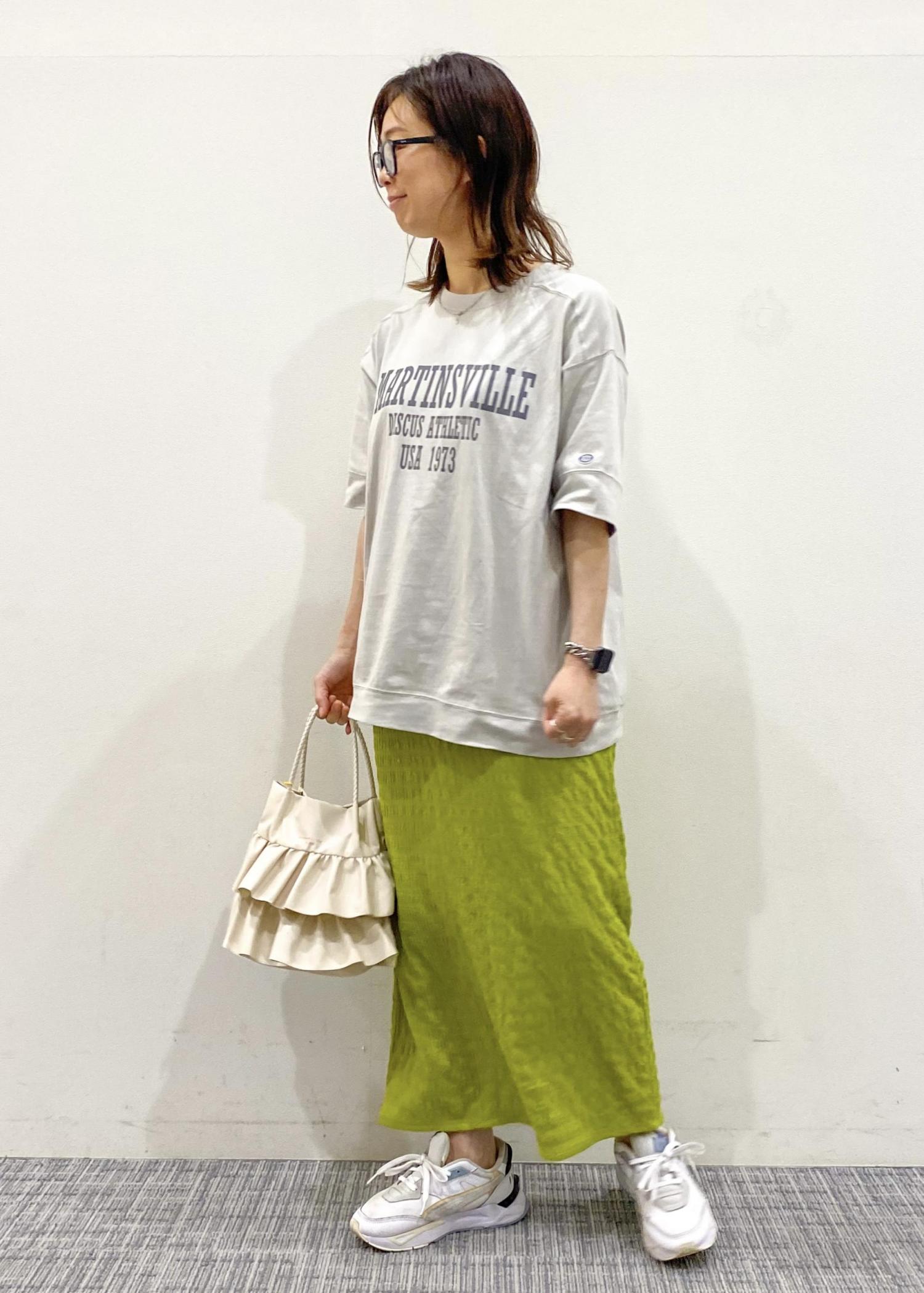 ラフなコーディネートでも色味がポイントになってかわいさUPです!