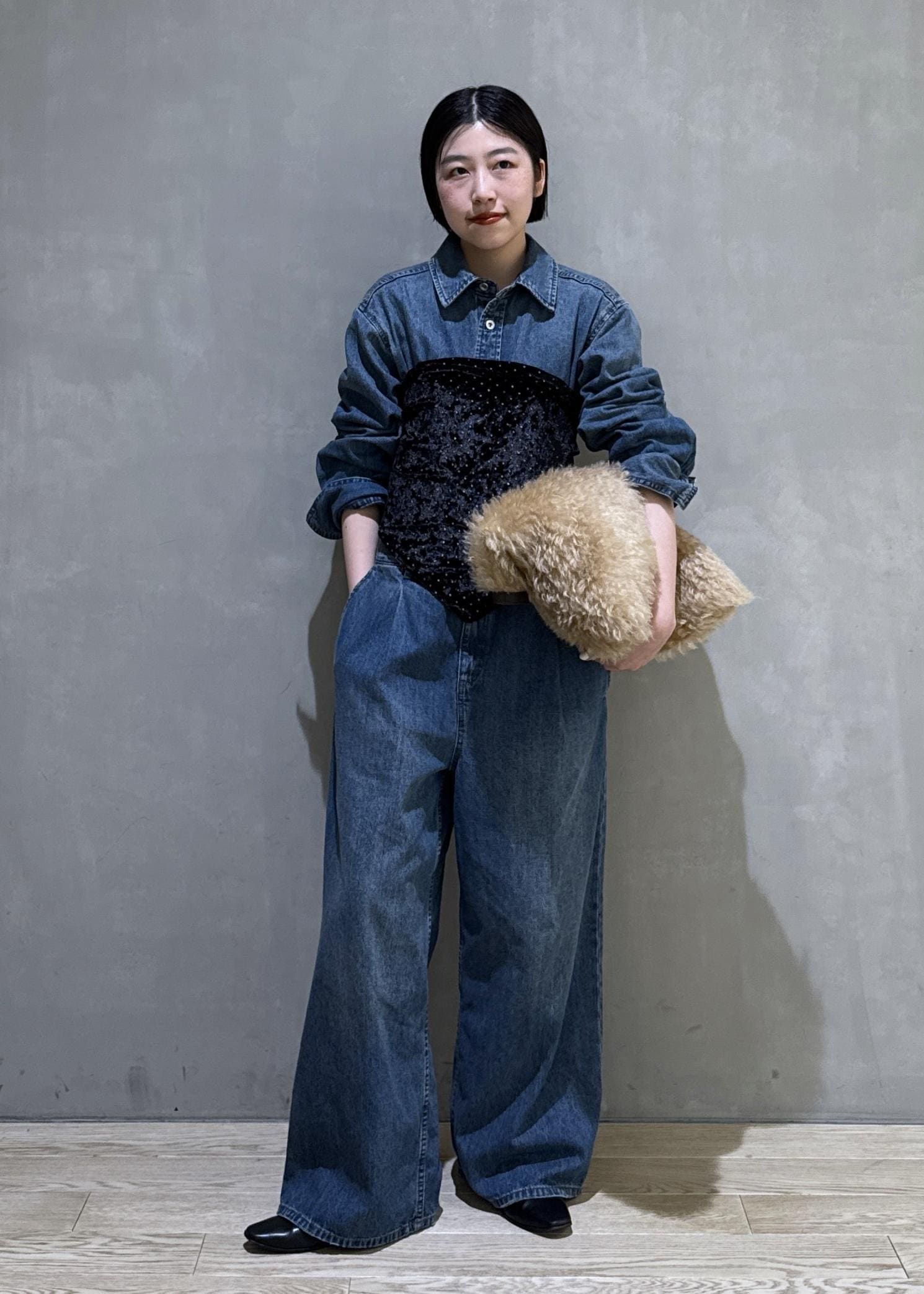 もちろん、Tシャツとシンプルに合わせるのもおすすめ。