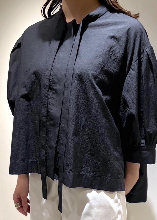 ボウタイリボンが女性らしくて素敵なブラウス、前はショート丈になっているデザインで様々なボトムスに合わせやすいです!ボタン部分が隠れている仕様なので綺麗めコーデにも。