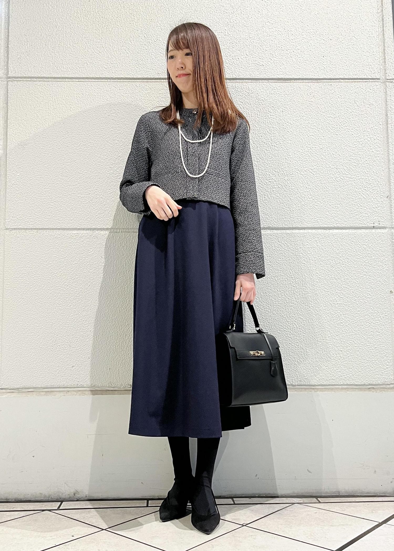 ウエストの切り替え位置が高めにあるので、下半身に重心が行きがちな骨格ウェーブの方におすすめ!