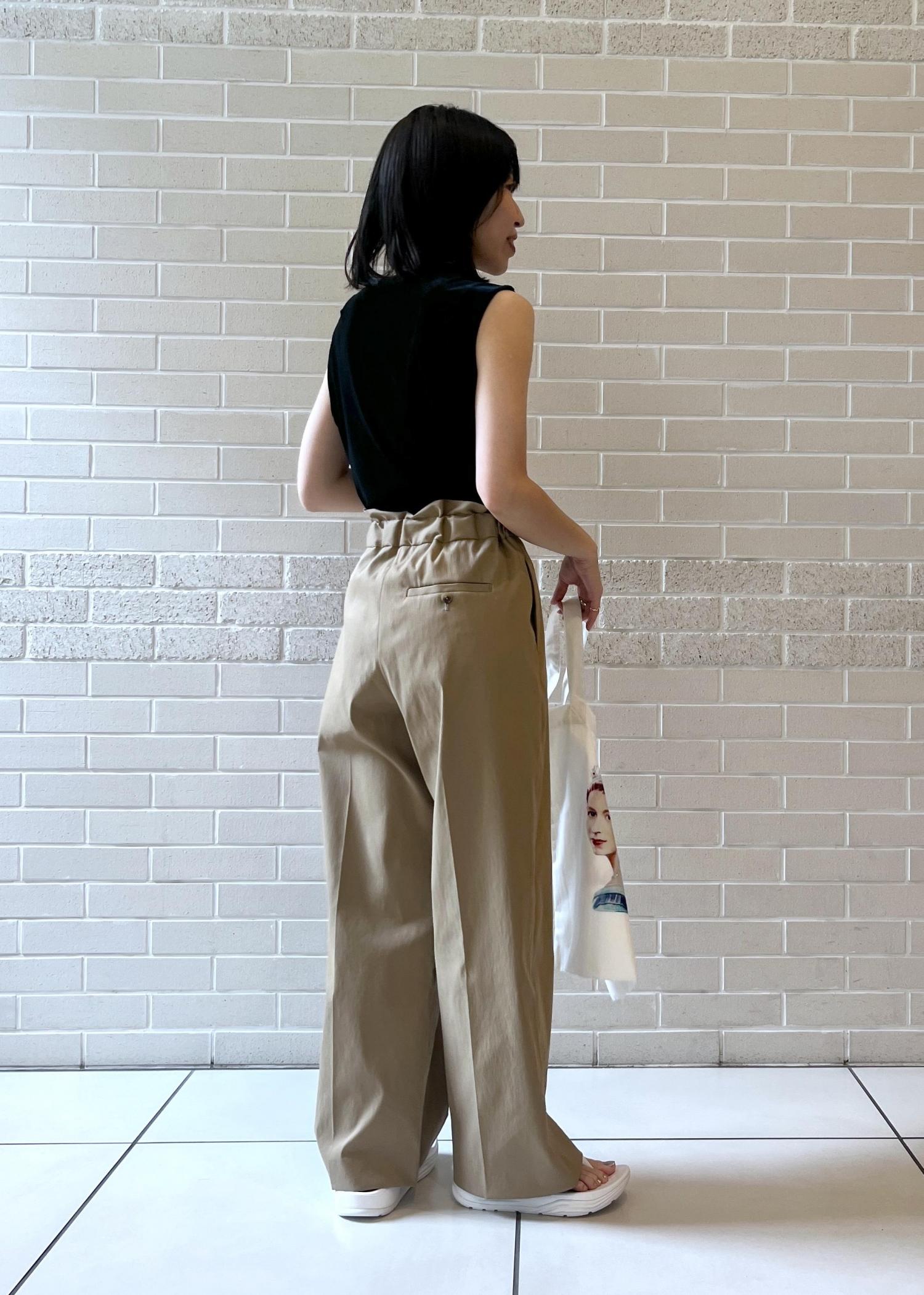 コンパクトなサイズ感のトップスにハイウエストパンツをあわせてスタイルアップ!