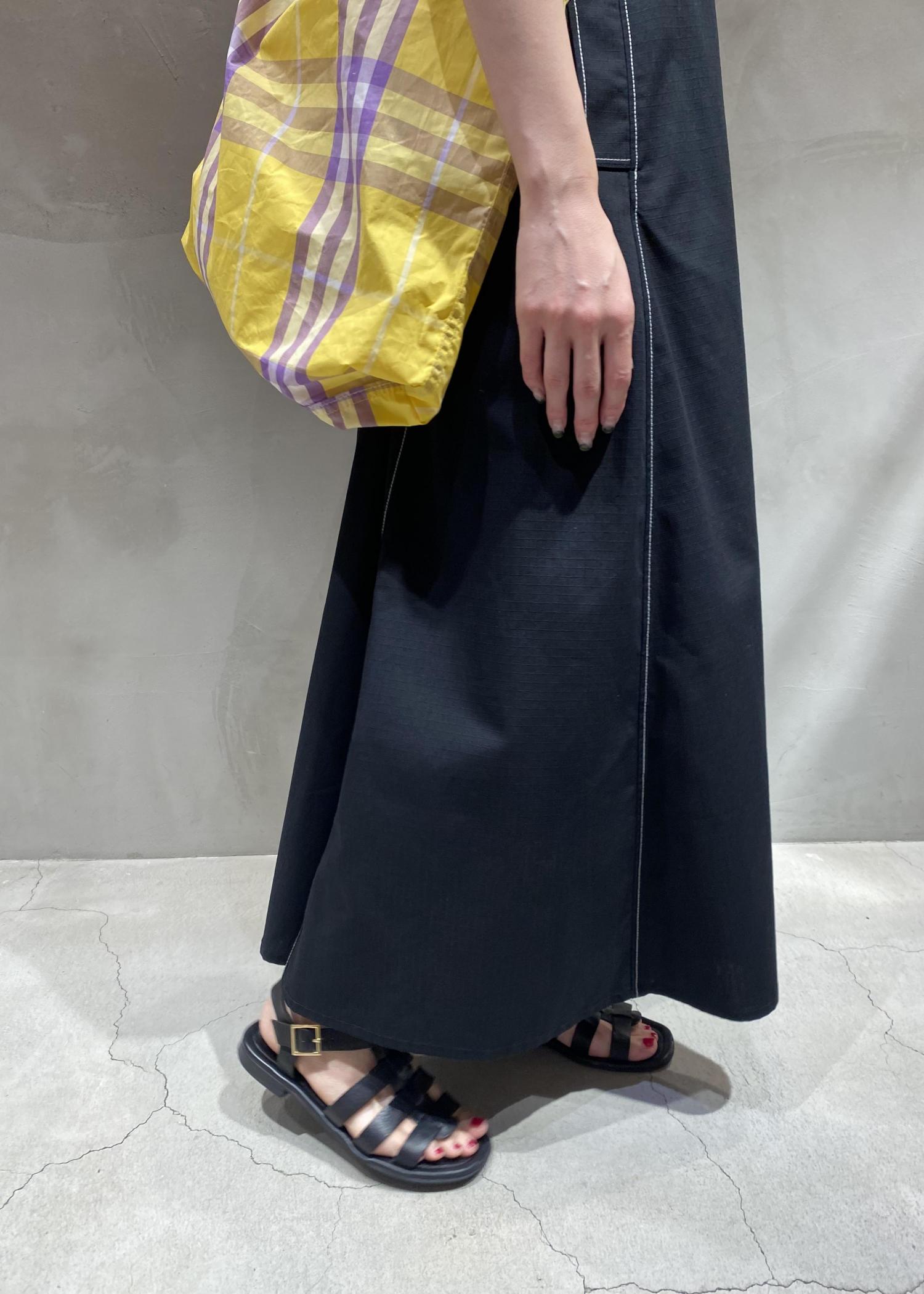 《環境配慮・2WAY》後ろ姿まで抜かりなく。大きなバックルがデザインポイントの、ロングジレとしても着こなせるロングワンピ—スです!