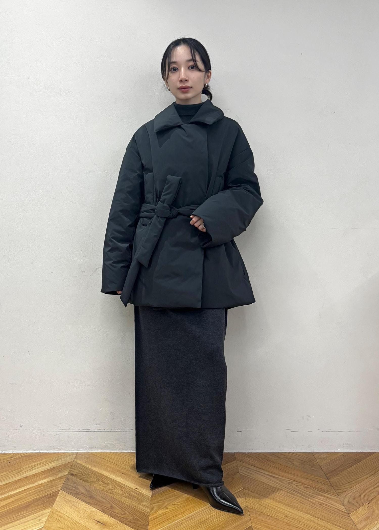 モード女子も着られるフェミスタイルの一丁上がりです。