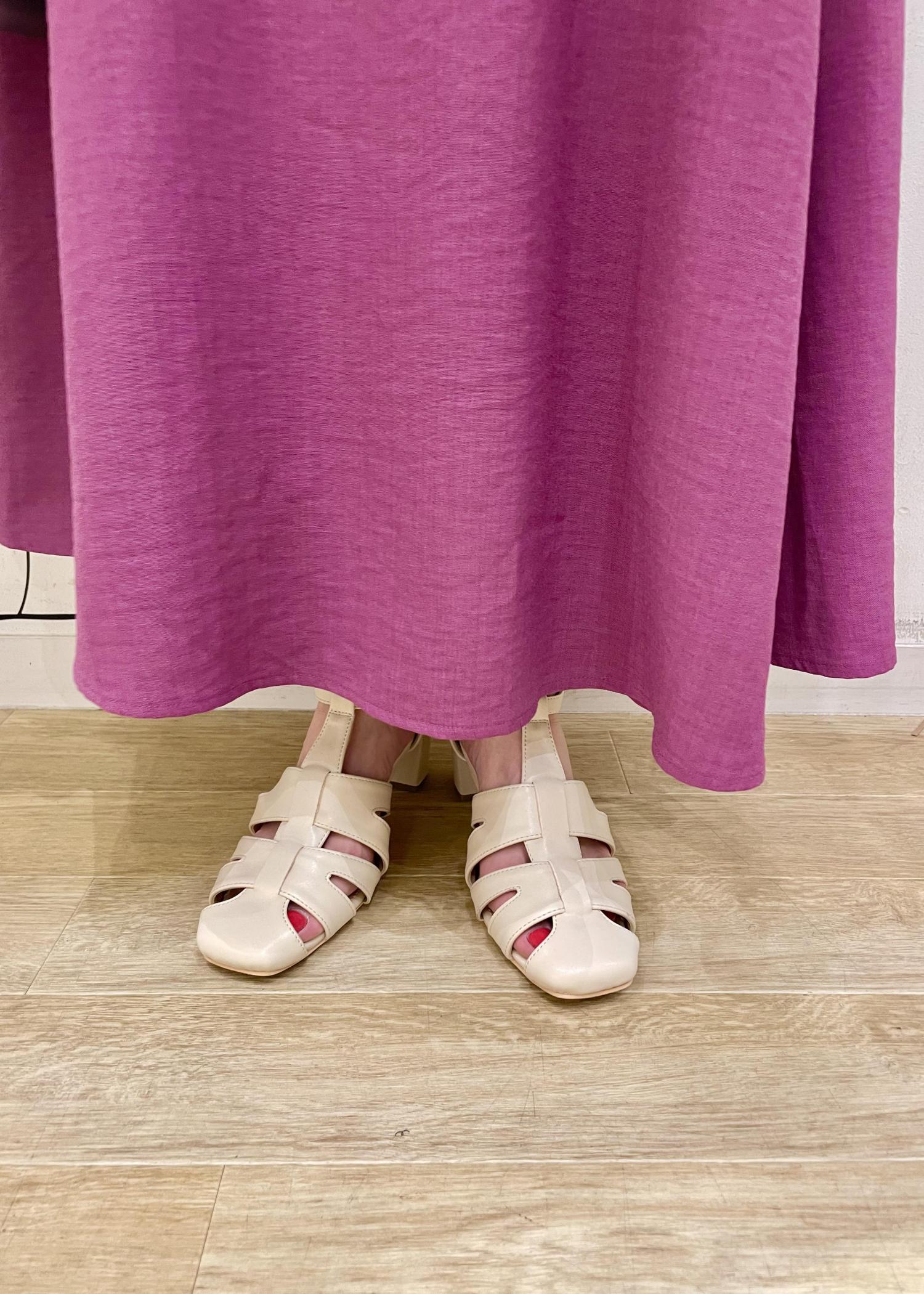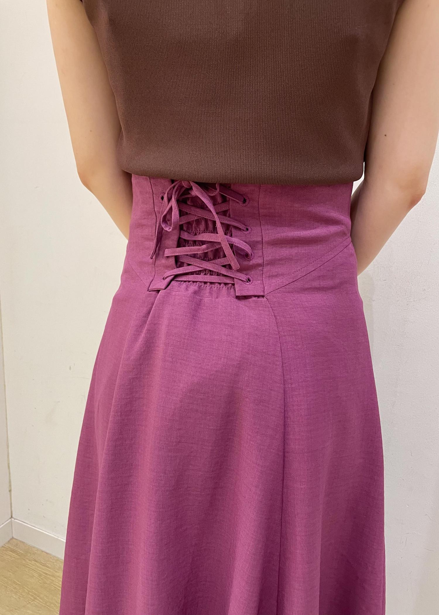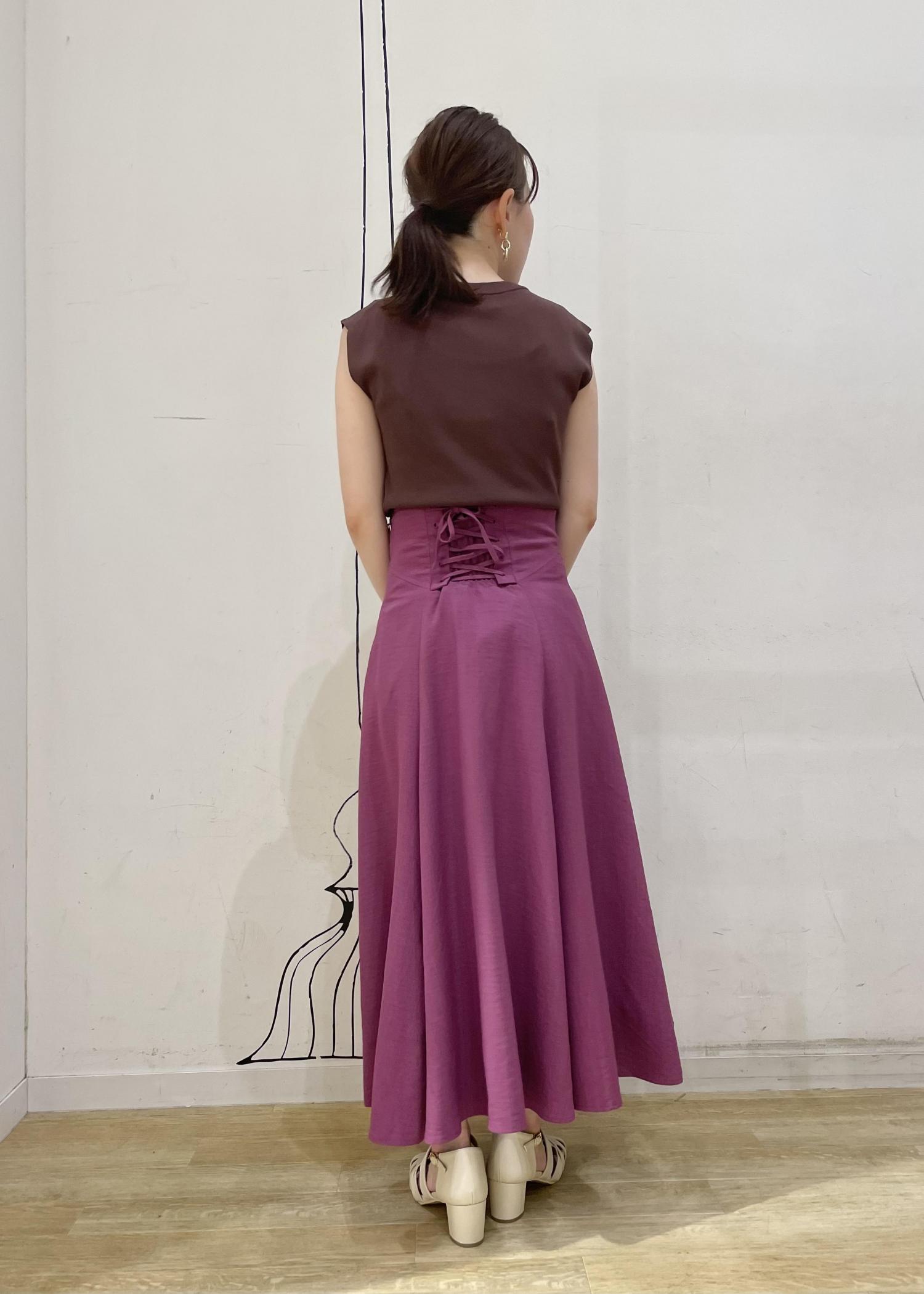 甘めになりやすいピンクのスカートを、ブラウンニットと合わせて大人カジュアルコーデに。おすすめのカラーオンカラーコーデです。