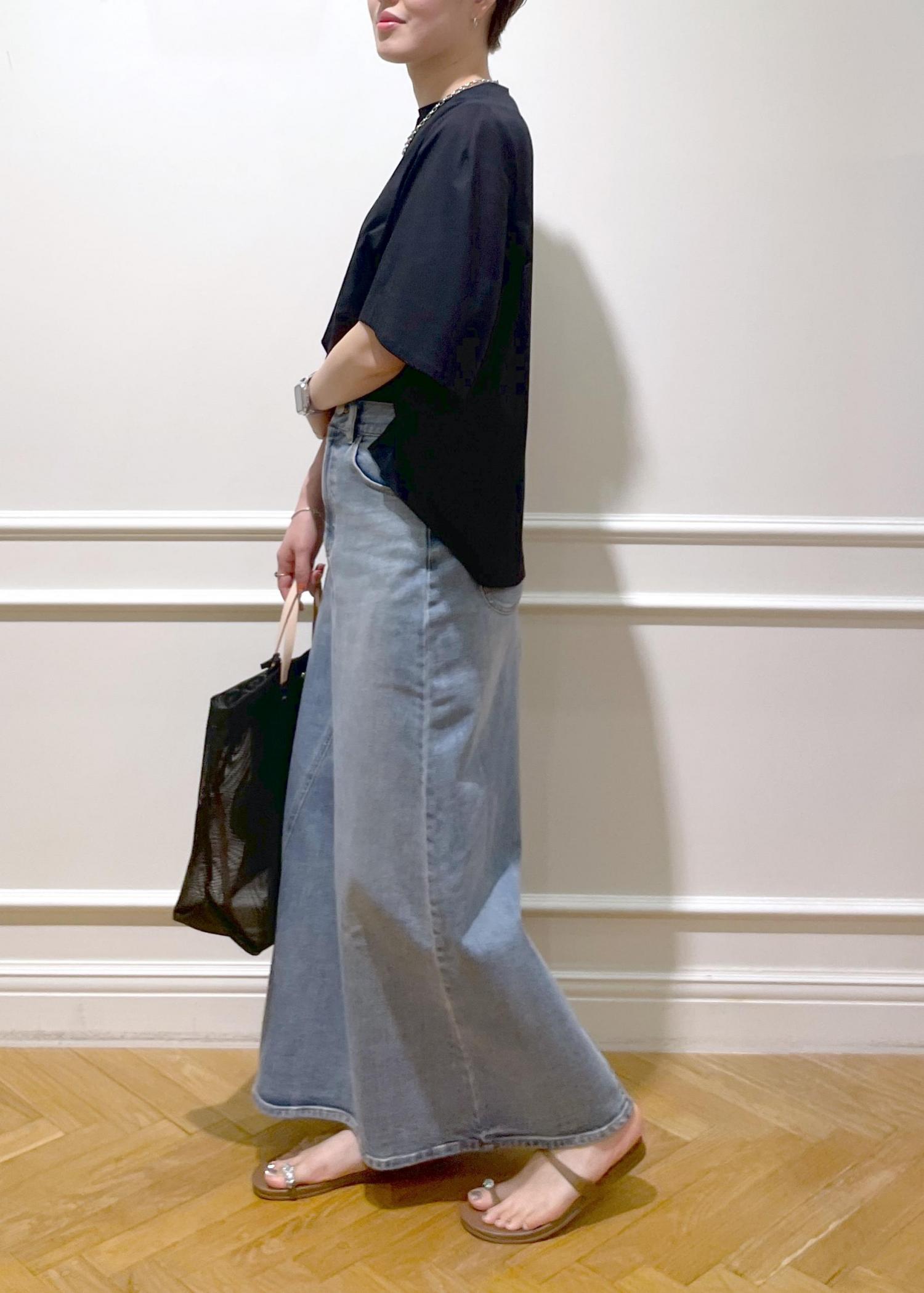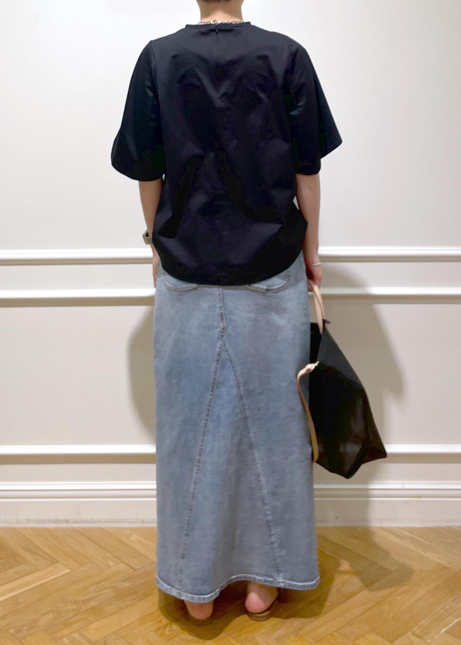 三尋木さんの大人きれいめTシャツは、目の詰まった編み地で張り感があり、ベルスリーブのアクセントがさり気なくオシャレを演出して普通のTシャツコーデと差をつけられます♪