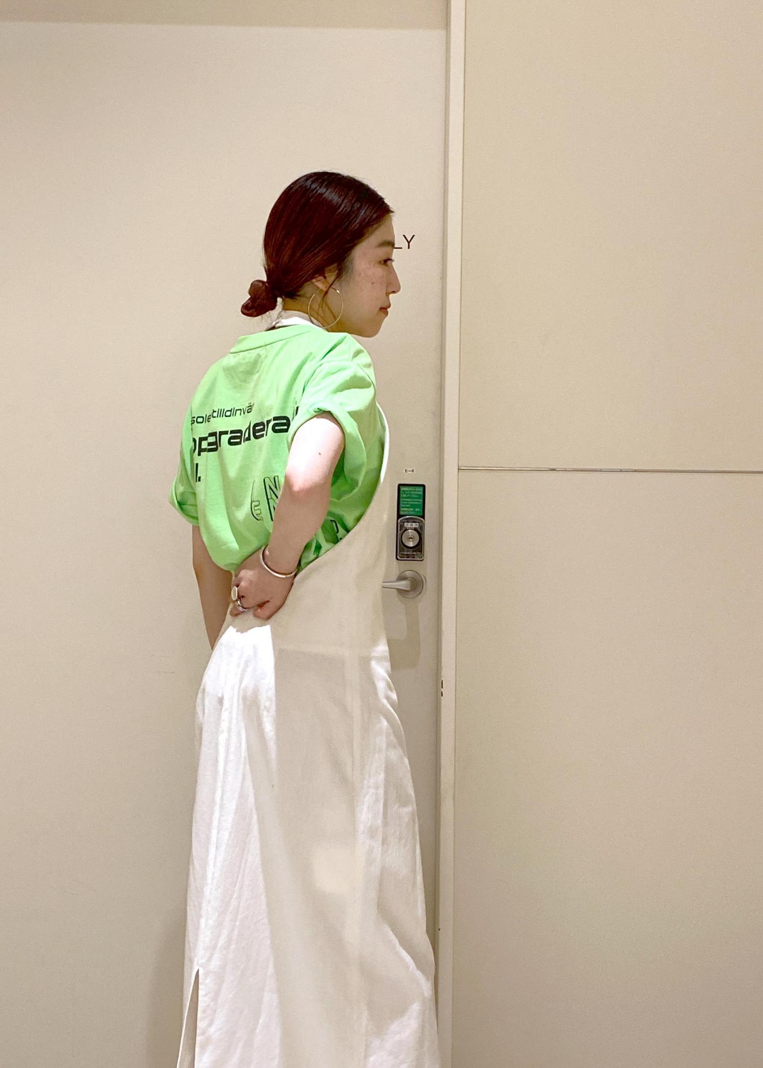ネオンカラーのTシャツは1枚で主役感のあるアイテムなので